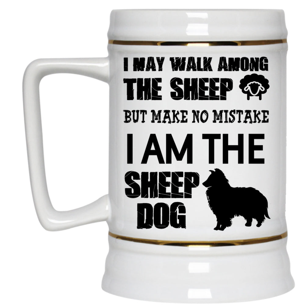 I Am The Sheep Dog Beer Stein 22oz, I May Walk Among The Sheep Beer Mug
