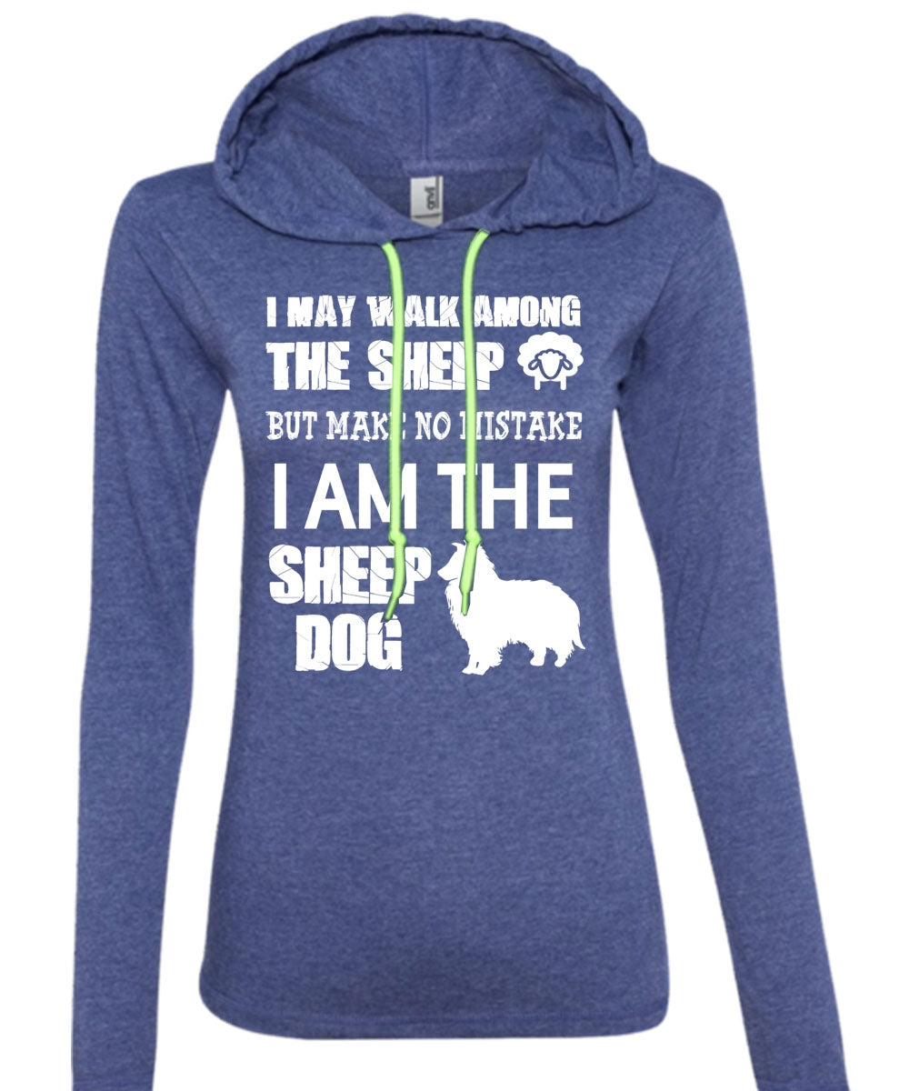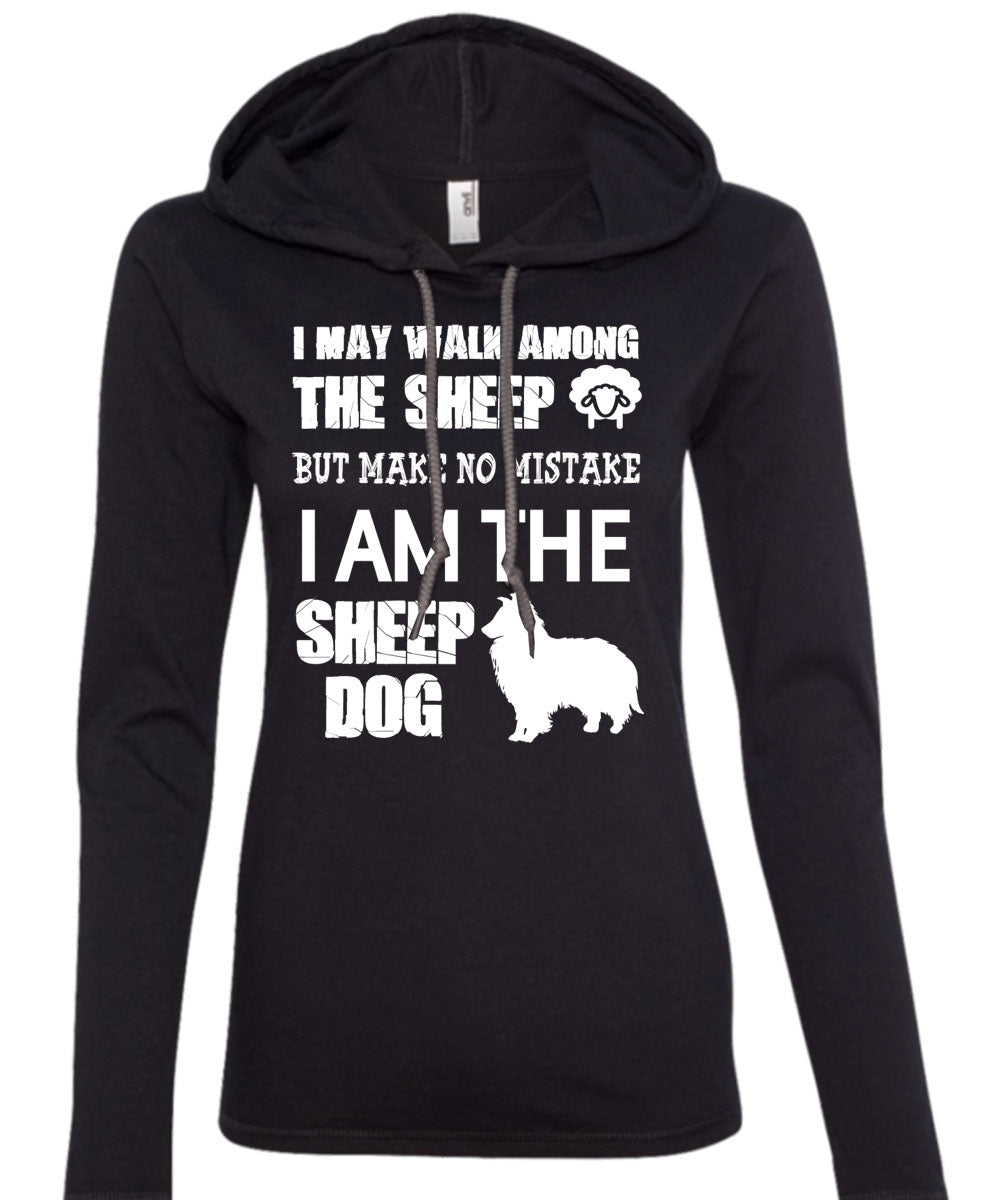 I Am The Sheep Dog T Shirt, I May Walk Among The Sheep Shirt (Anvil Ladies Ringspun Hooded)
