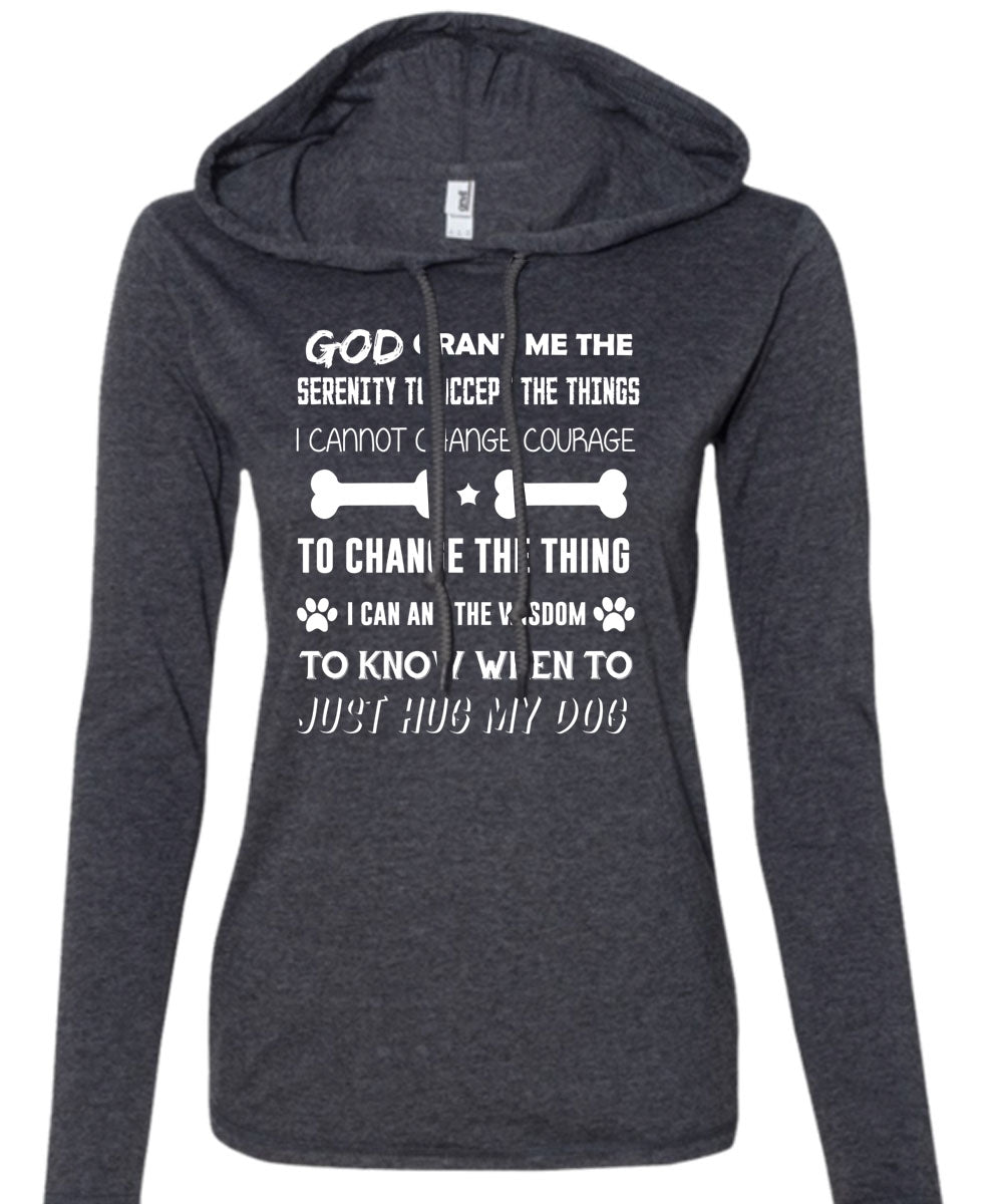 I Can And The Wisdom To Know T Shirt, To Just Hug My Dog Shirt (Anvil Ladies Ringspun Hooded)