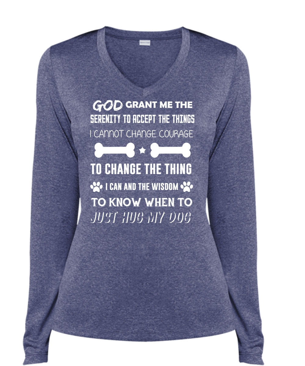 I Can And The Wisdom To Know T Shirt, To Just Hug My Dog Shirt (Ladies LS Heather V-Neck)