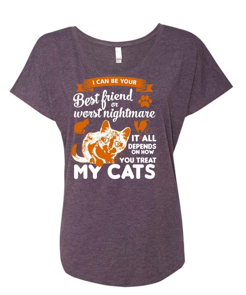 I Can Be Your Best Friend Or Worst Nightmare T Shirt, Depends On How You Treat My Cats T Shirt (Ladies' Triblend Dolman Sleeve)