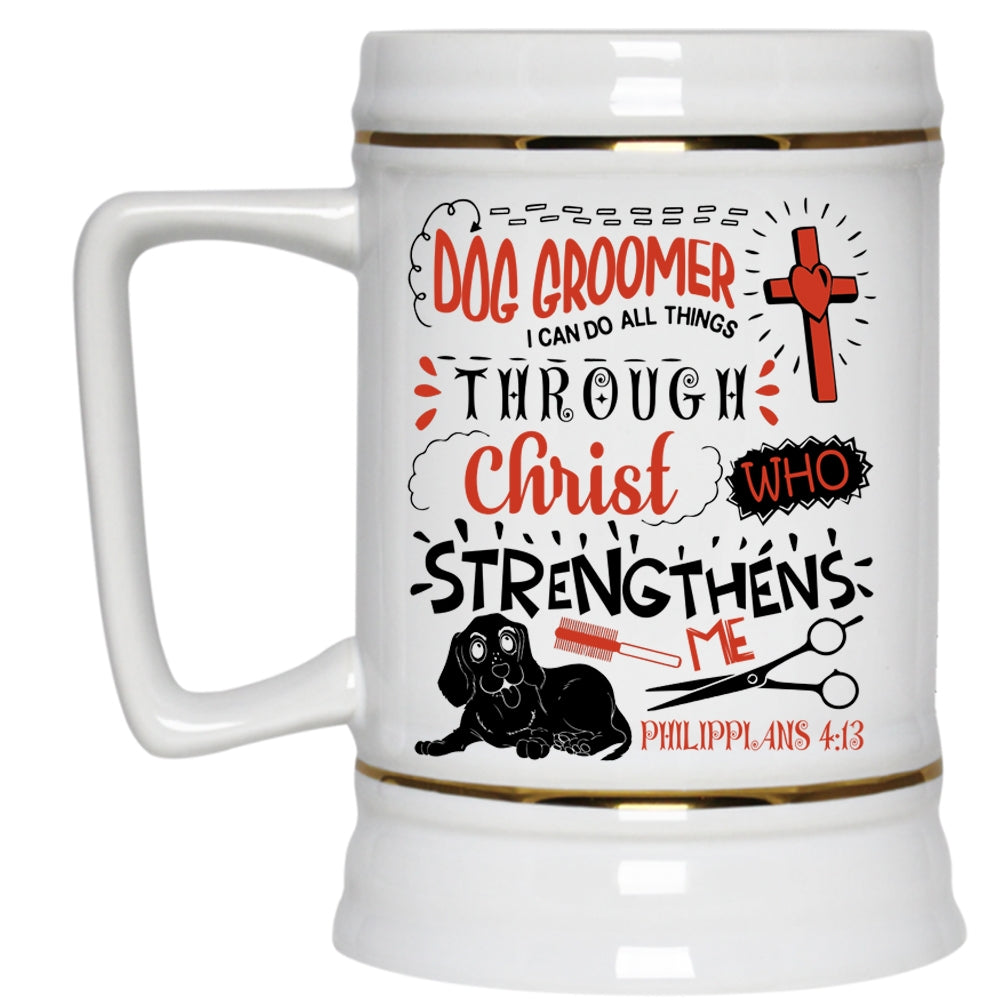 I Can Do All Things Beer Stein 22oz, Dog Groomer Beer Mug
