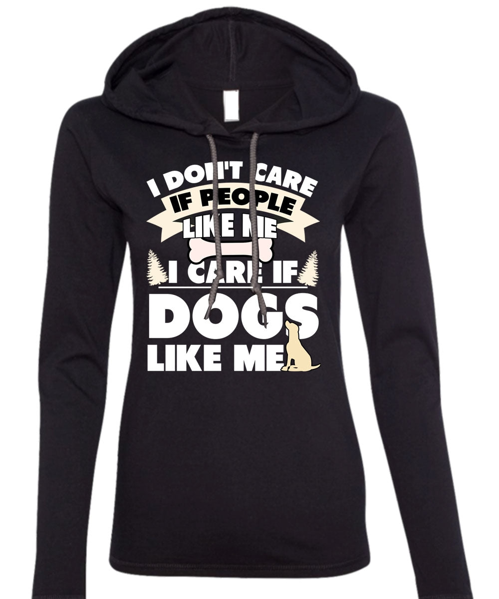 I Care If Dogs Like Me T Shirt, I Don't Care T Shirt (Anvil Ladies Ringspun Hooded)