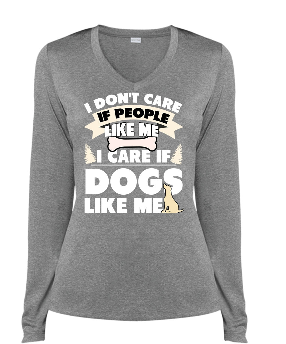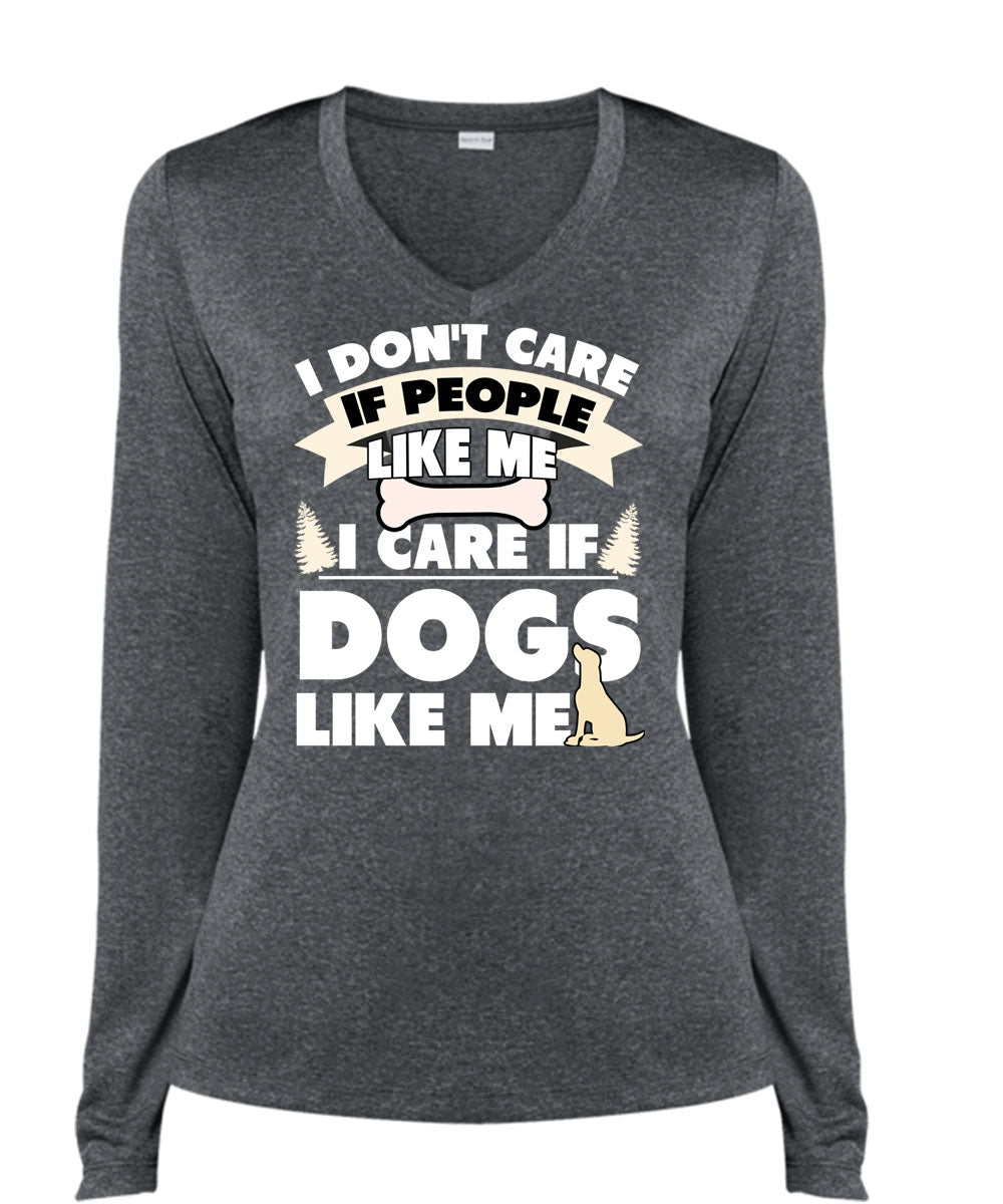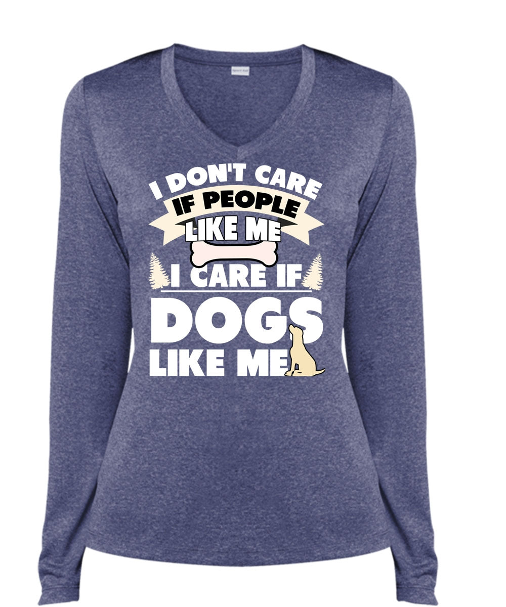 I Care If Dogs Like Me T Shirt, I Don't Care T Shirt, Cool Shirt (Ladies LS Heather V-Neck)