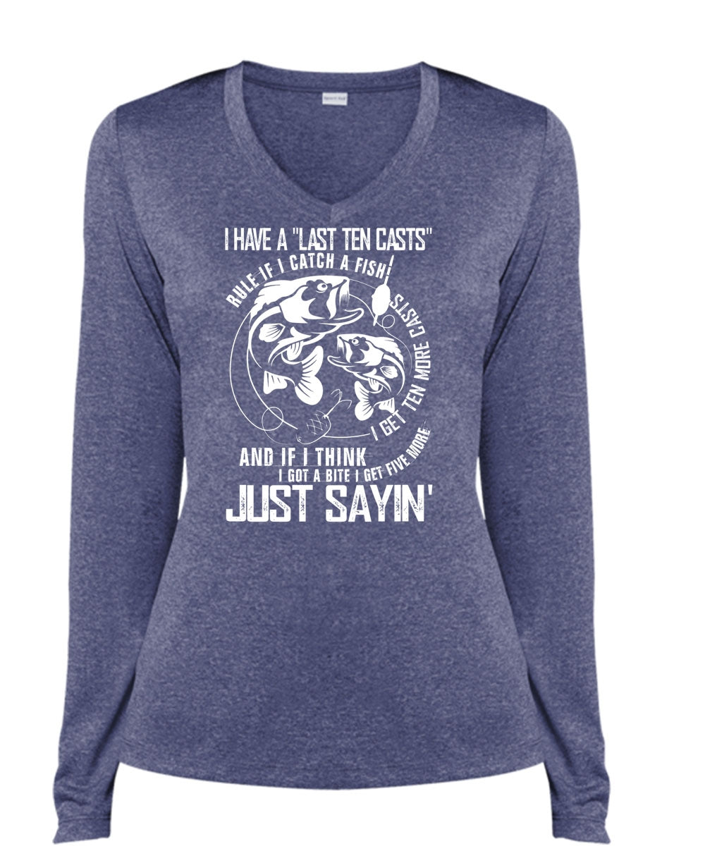I Catch A Fish T Shirt, Being A Fisher T Shirt, Cool Shirt (Ladies LS Heather V-Neck)