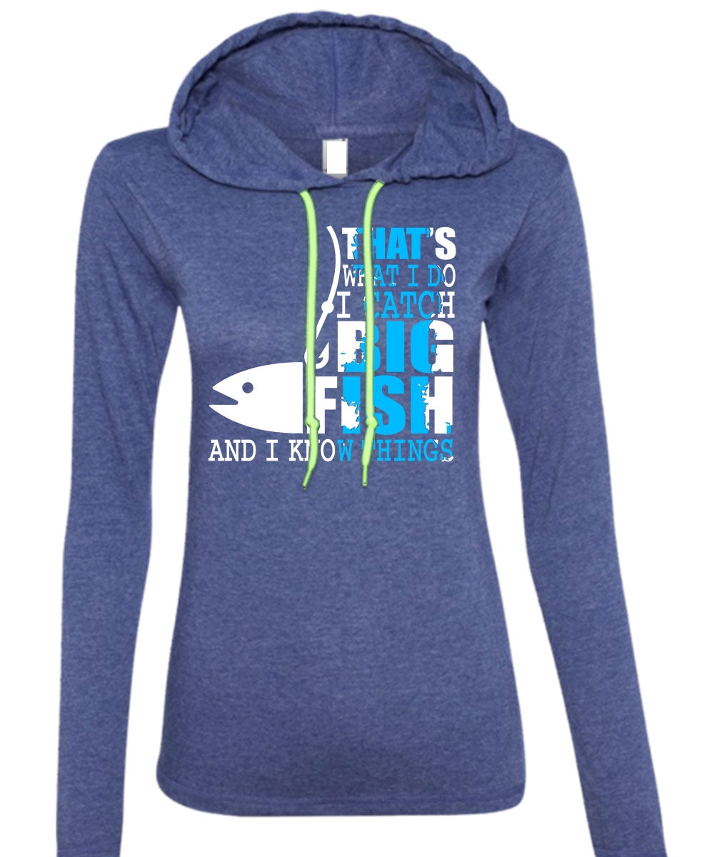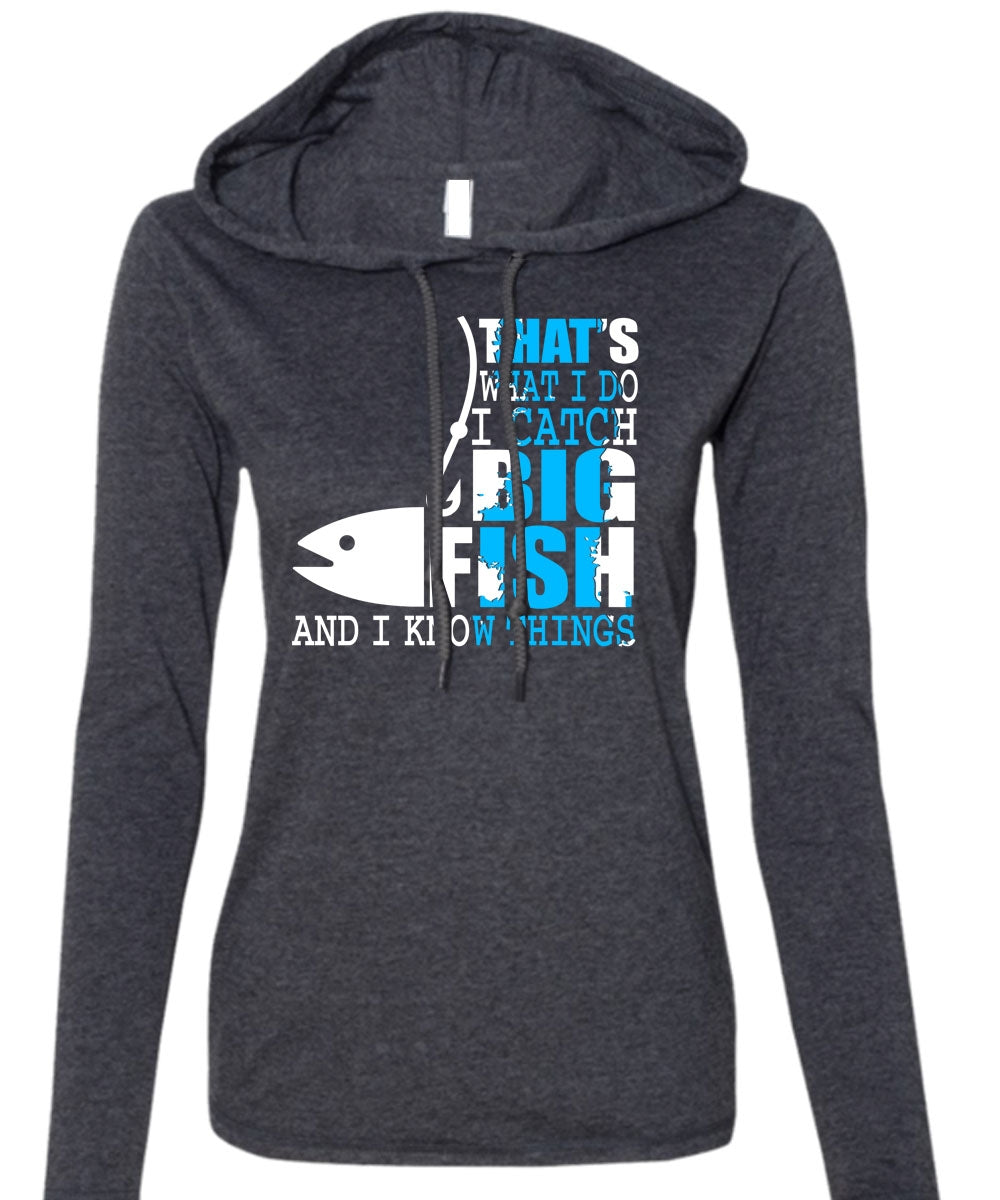 I Catch Big Fish T Shirt, Being A Fisher T Shirt (Anvil Ladies Ringspun Hooded)