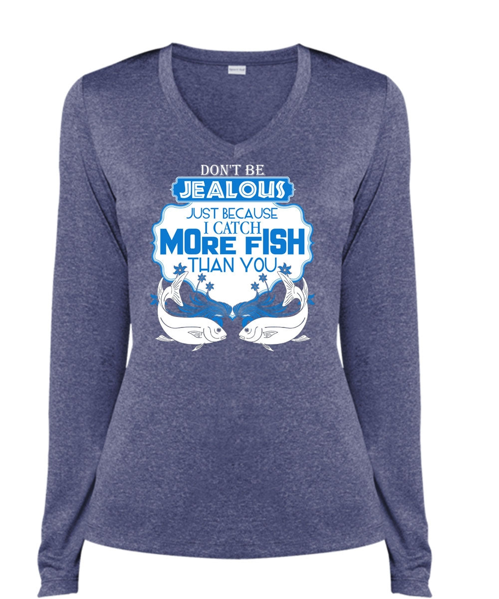 I Catch More Fish Than You T Shirt, Being A Fisher T Shirt, Cool Shirt (Ladies LS Heather V-Neck)