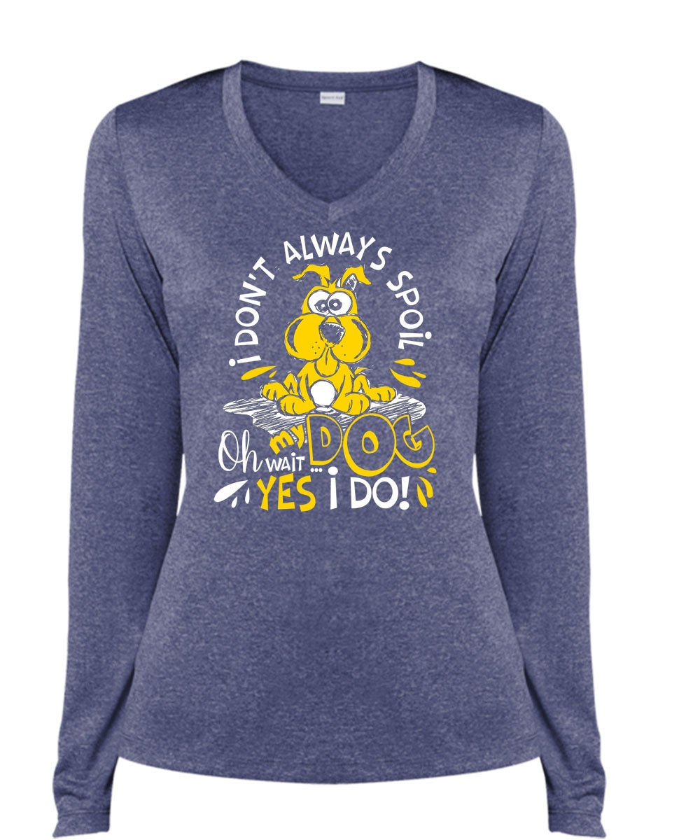 I Don't Always Spoil My Dog T Shirt, My Favorite T Shirt, Cool Shirt (Ladies LS Heather V-Neck)