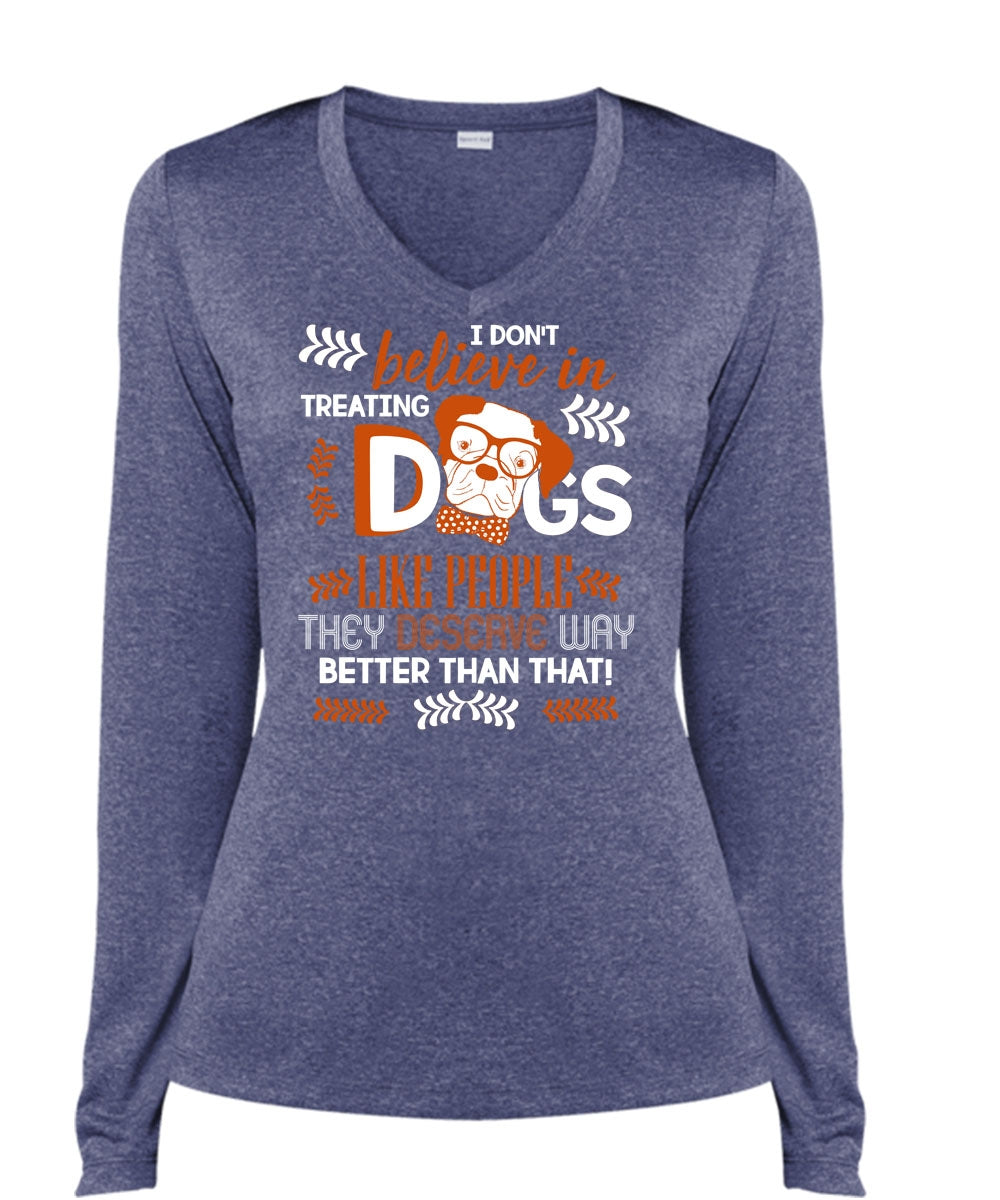 I Don't Believe In Treating Dogs T Shirt, My Favorite T Shirt, Cool Shirt (Ladies LS Heather V-Neck)