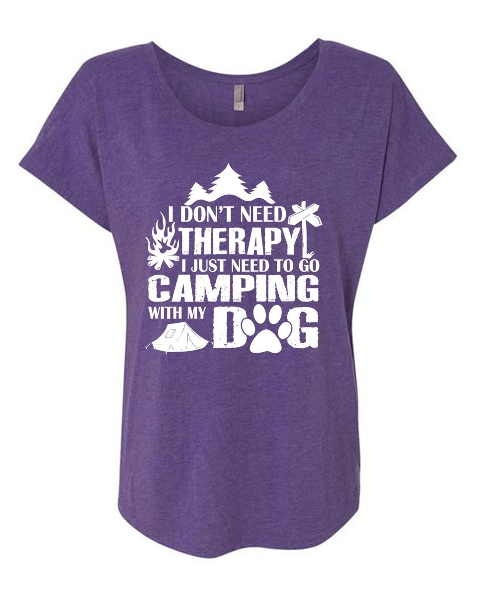 I Don't Need Therapy I Just Need To Go Camping With My Dog T Shirt, Travel T Shirt (Ladies' Triblend Dolman Sleeve)