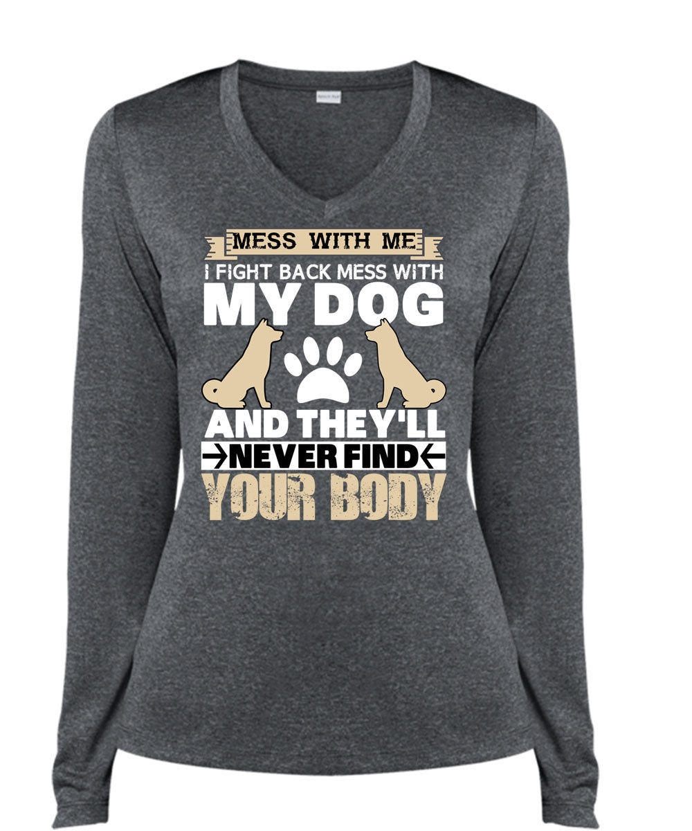 I Fight Back Mess With My Dog T Shirt, They'll Never Find Your Body T Shirt, Cool Shirt (Ladies LS Heather V-Neck)