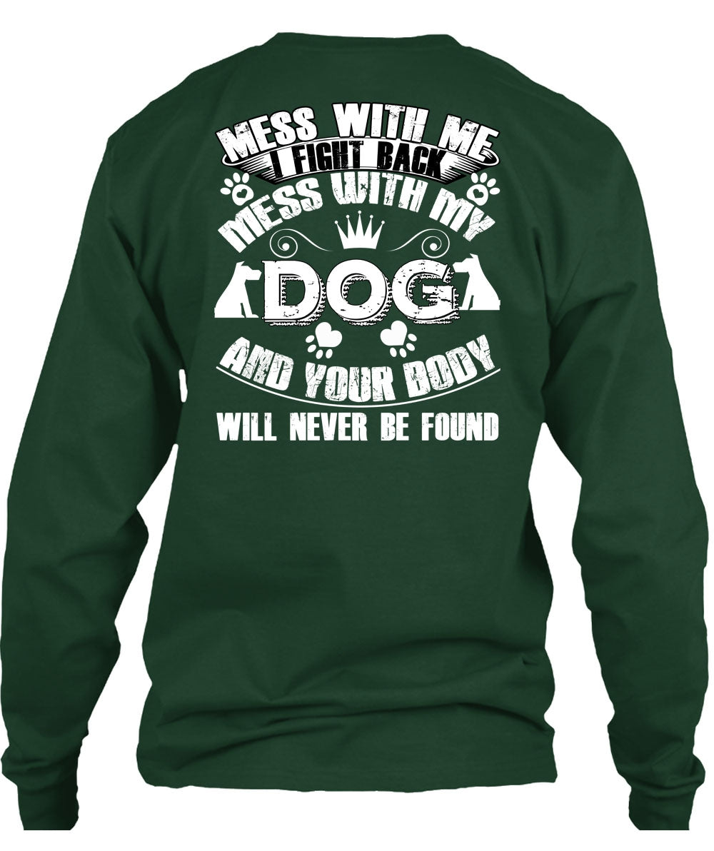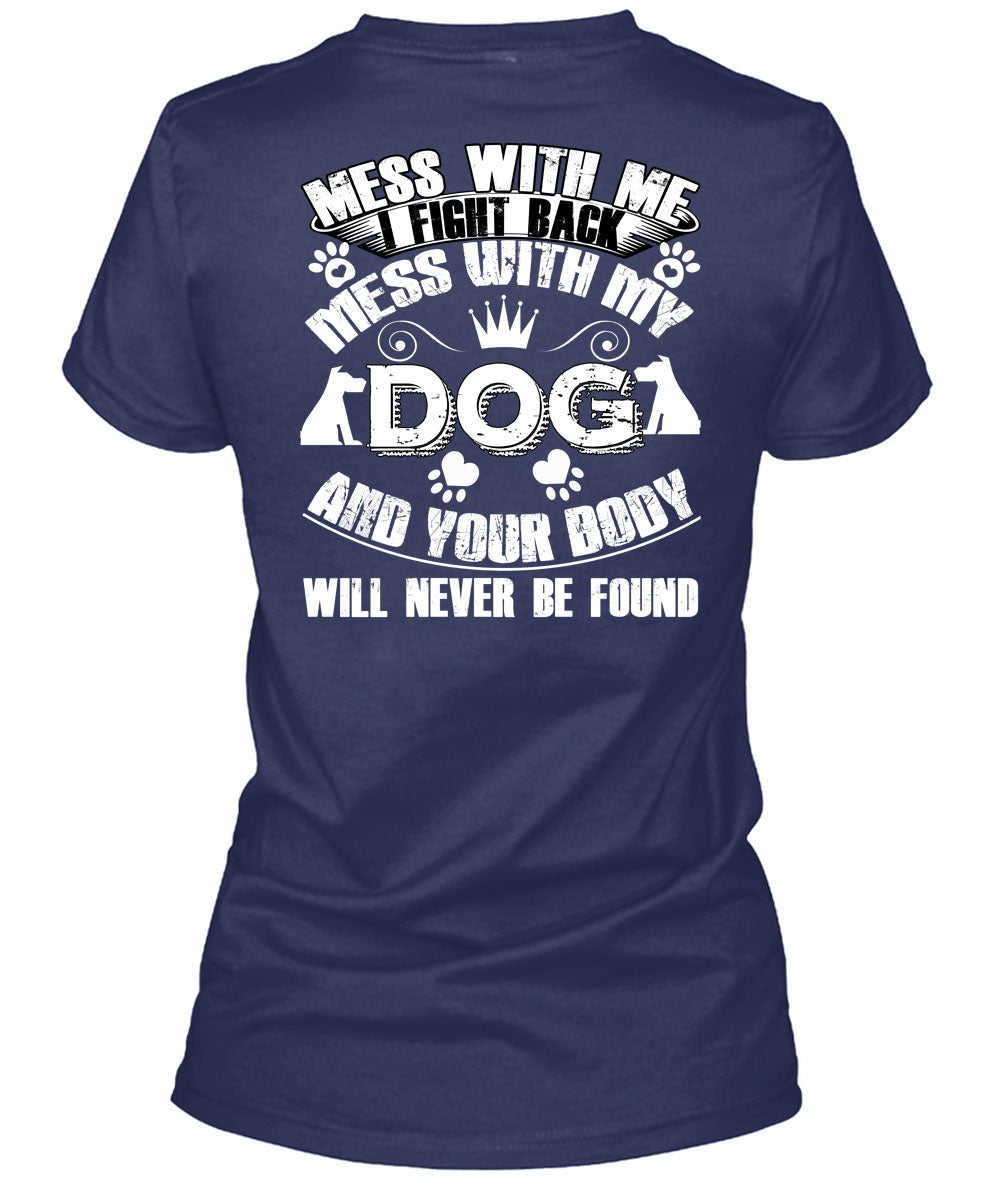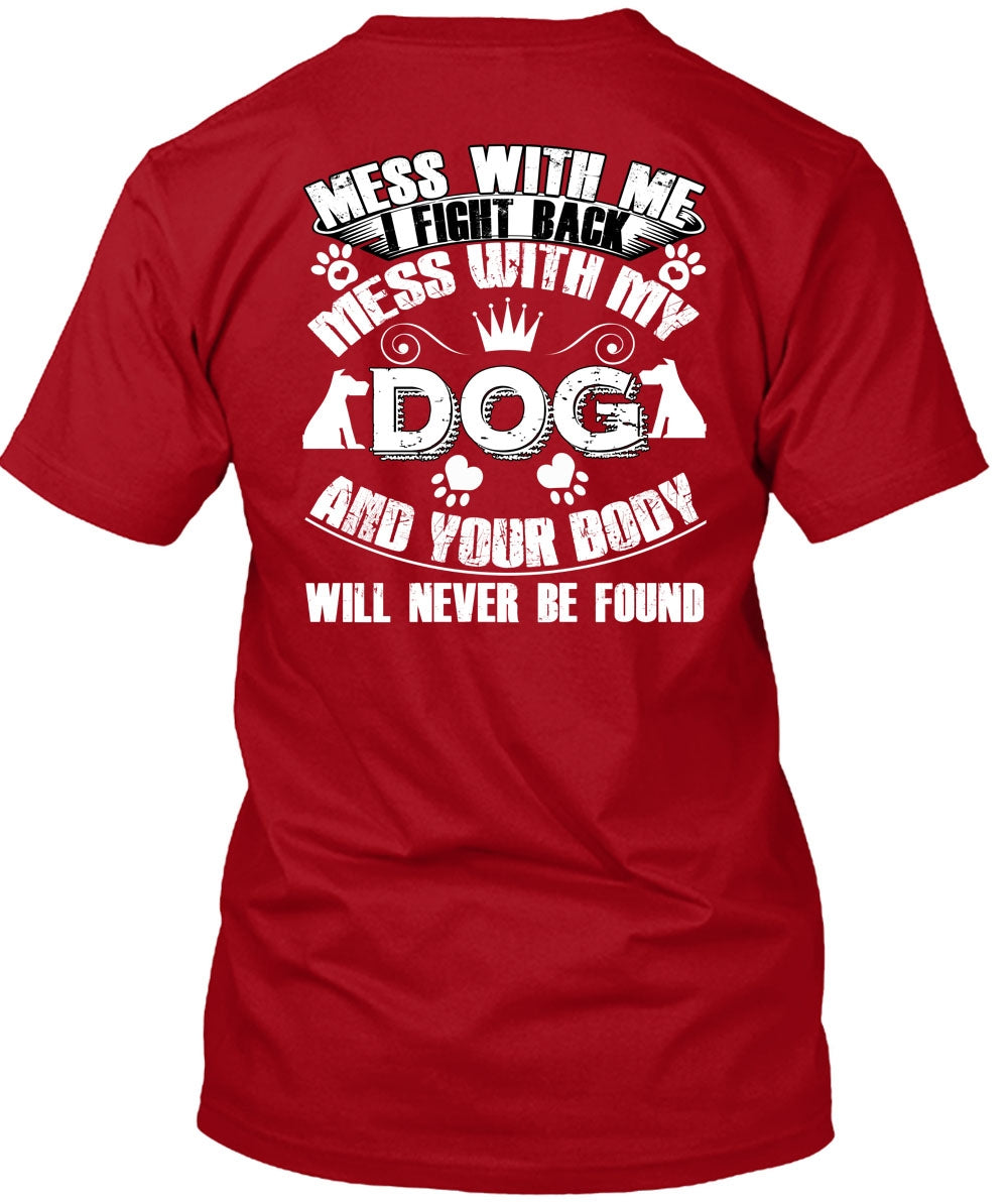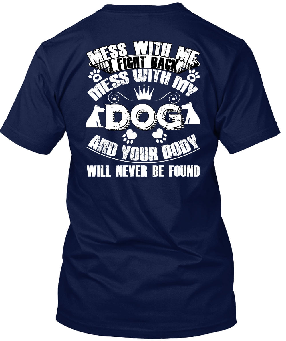 I Fight Back Mess With My Dog T Shirt, Your Body Will Never Be Found T Shirt