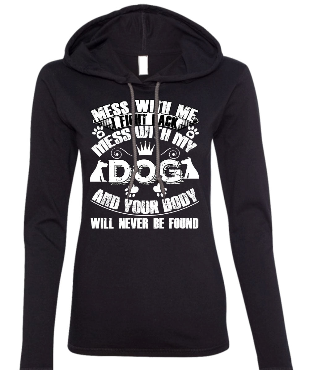 I Fight Back Mess With My Dog T Shirt, Your Body Will Never Be Found T Shirt (Anvil Ladies Ringspun Hooded)