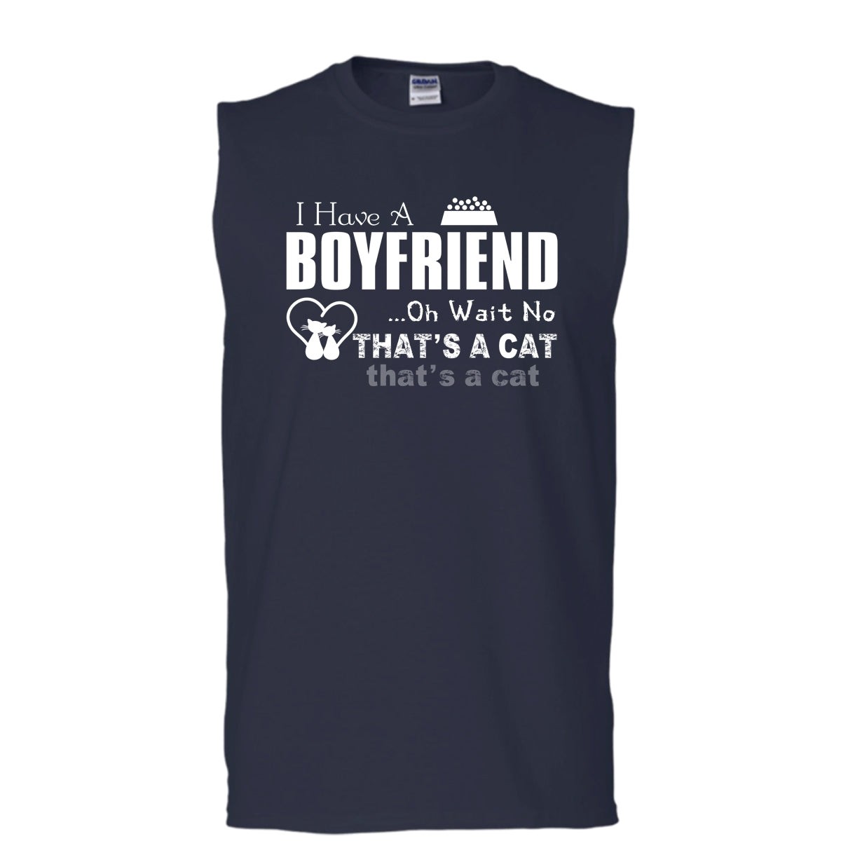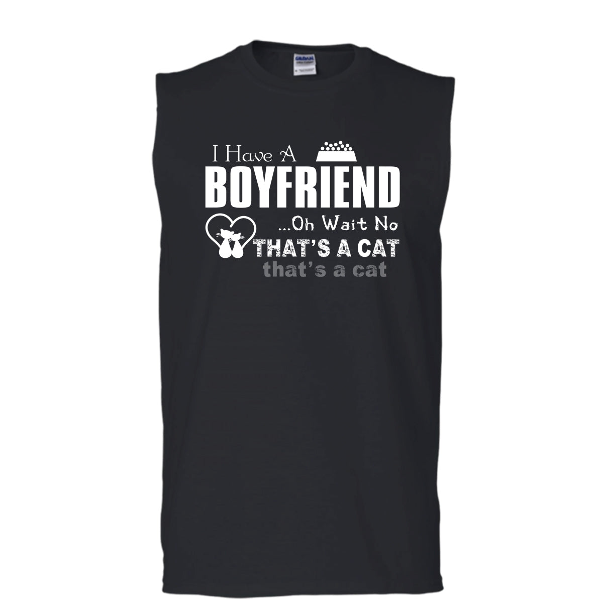 I Have A Boyfriend Shirt, Oh Wait No That's A Cat Shirt (Men's Cotton Sleeveless)