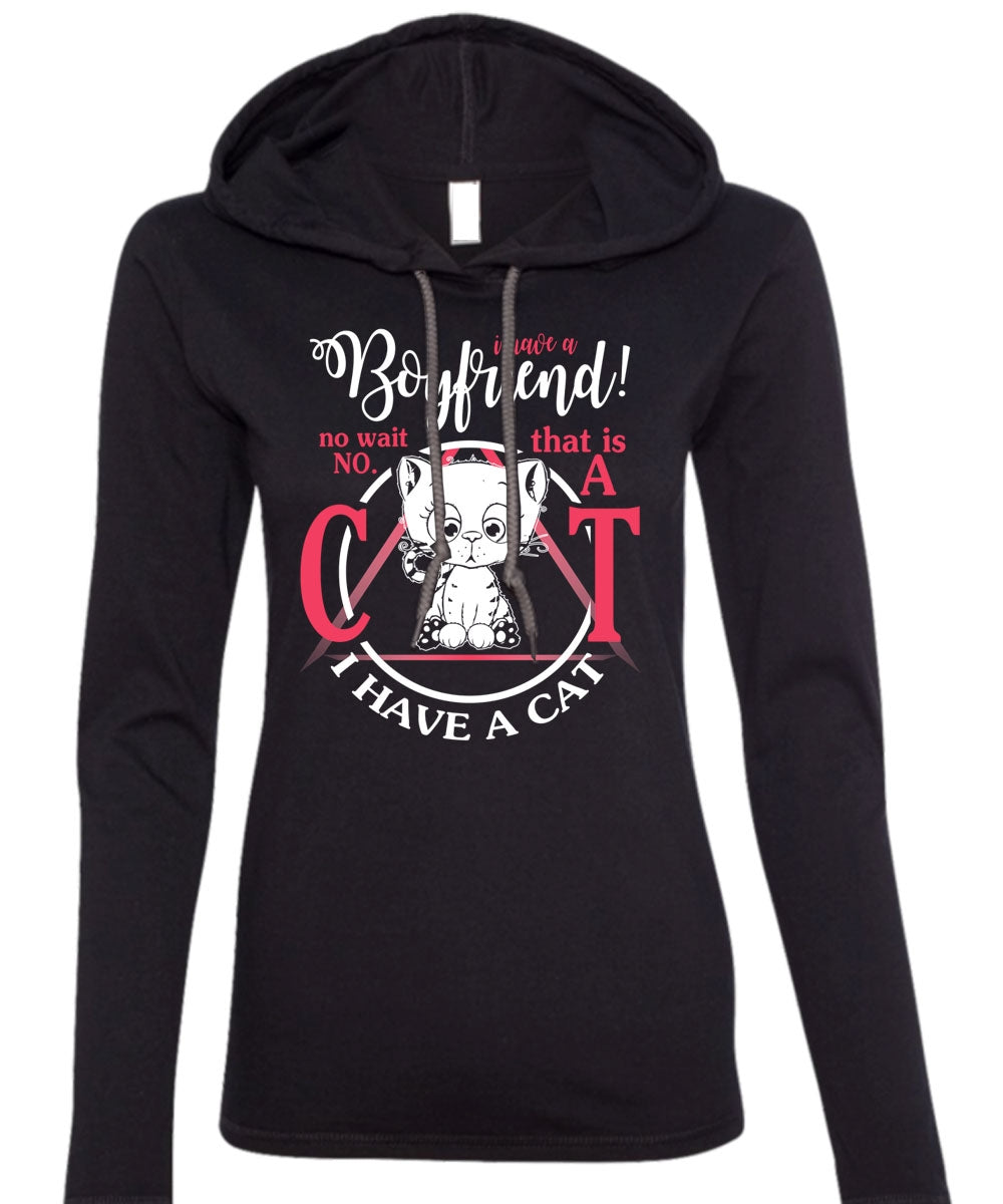 I Have A Boyfriend T Shirt, I Have A Cat T Shirt (Anvil Ladies Ringspun Hooded)