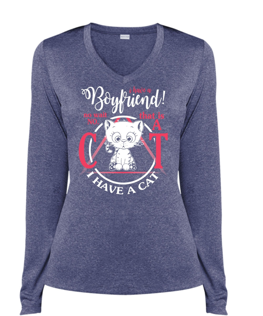 I Have A Boyfriend T Shirt, I Have A Cat T Shirt, Cool Shirt (Ladies LS Heather V-Neck)