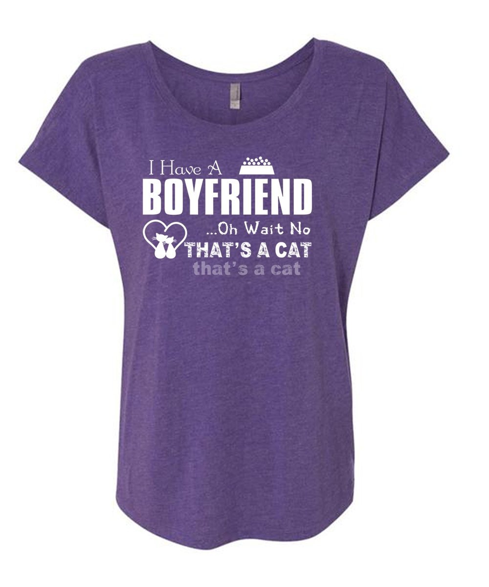 I Have A Boyfriend T Shirt, Oh Wait No That's A Cat T Shirt (Ladies' Triblend Dolman Sleeve)
