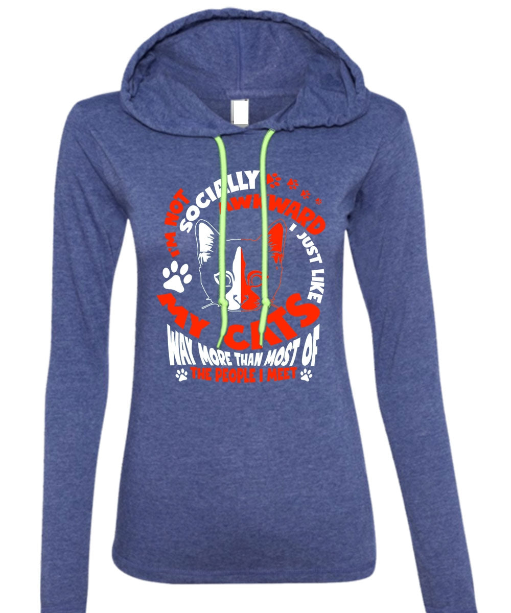 I Just Like My Cats T Shirt, I'm Not Socially Awkward T Shirt (Anvil Ladies Ringspun Hooded)
