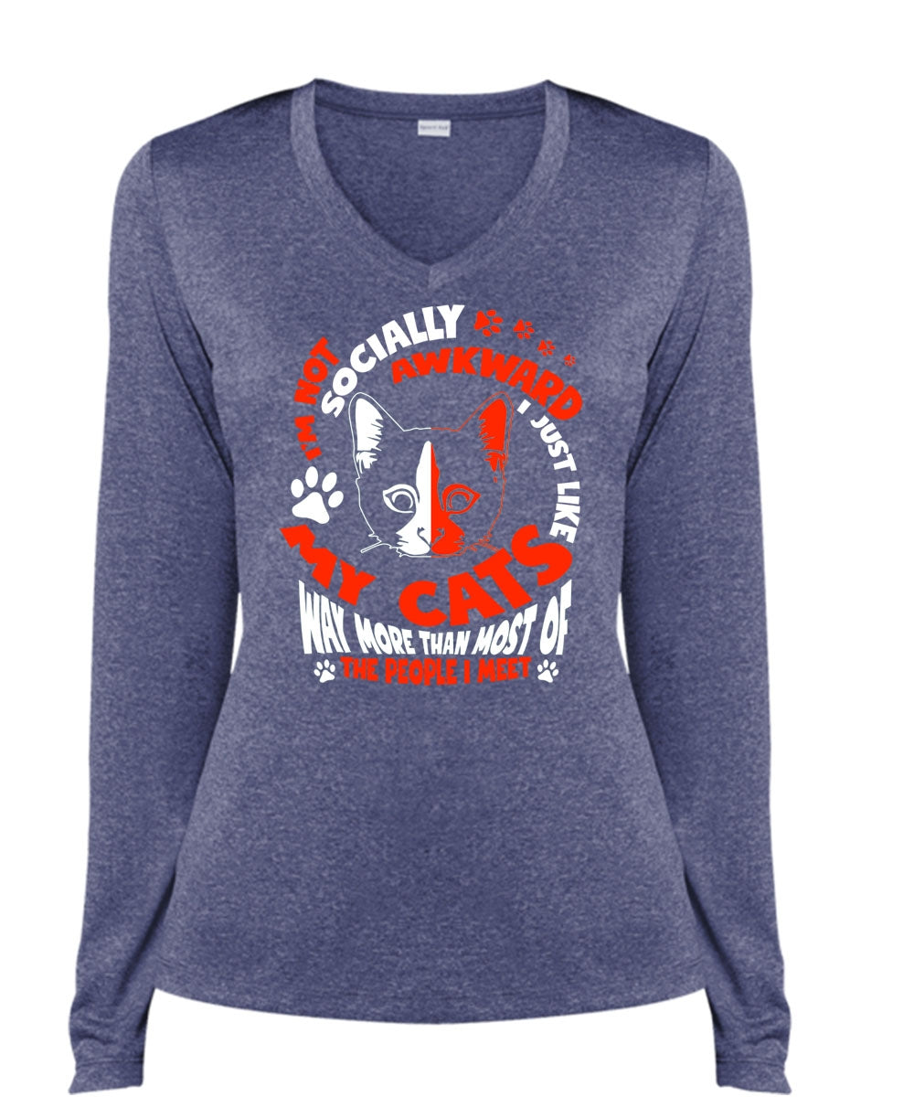 I Just Like My Cats T Shirt, I'm Not Socially Awkward T Shirt, Cool Shirt (Ladies LS Heather V-Neck)