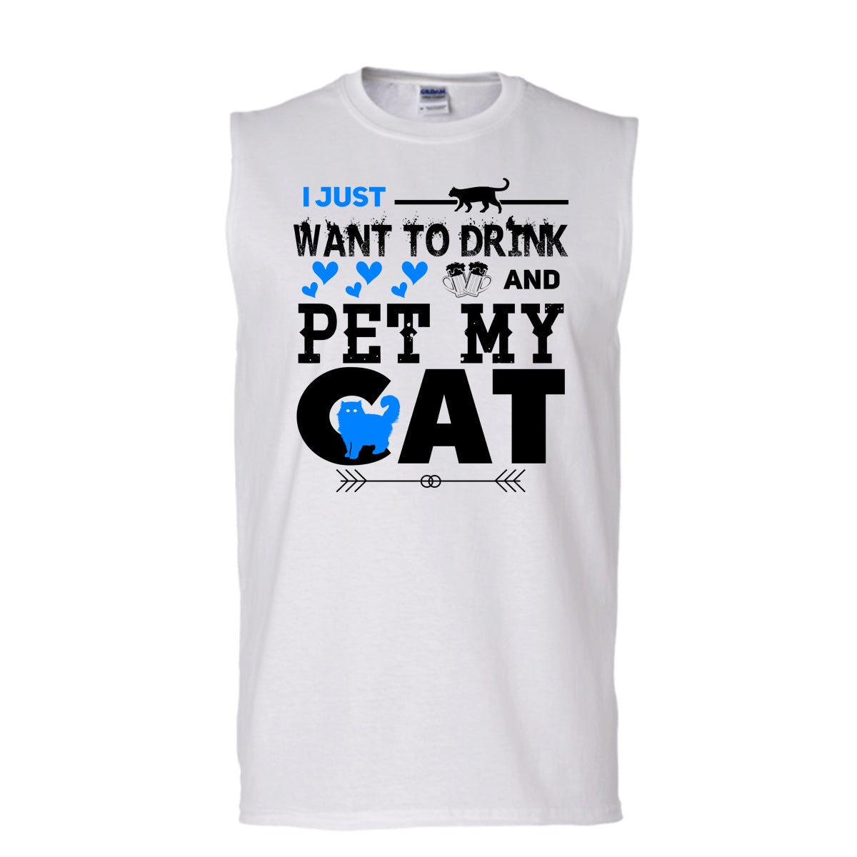 I Just Want To Drink And Pet My Cat Shirt, I Love Cat Shirt (Men's Cotton Sleeveless)