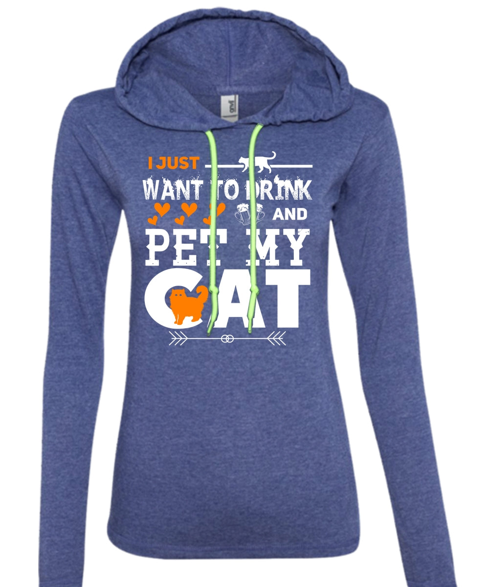 I Just Want To Drink And Pet My Cat T Shirt, My Pets T Shirt, My Favorite T Shirt (Anvil Ladies Ringspun Hooded)