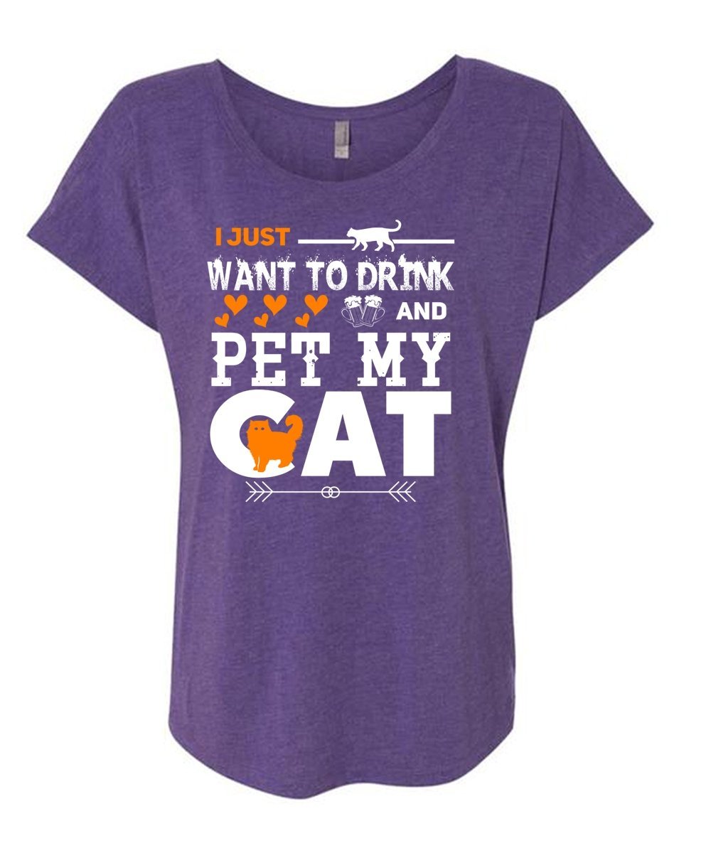 I Just Want To Drink And Pet My Cat T Shirt, My Pets T Shirt, My Favorite T Shirt (Ladies' Triblend Dolman Sleeve)