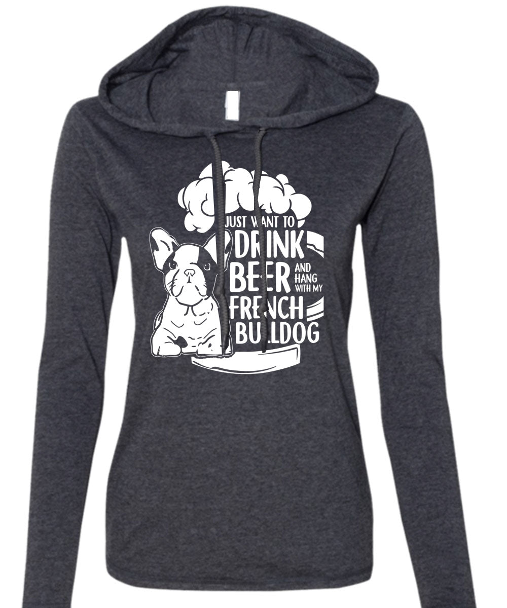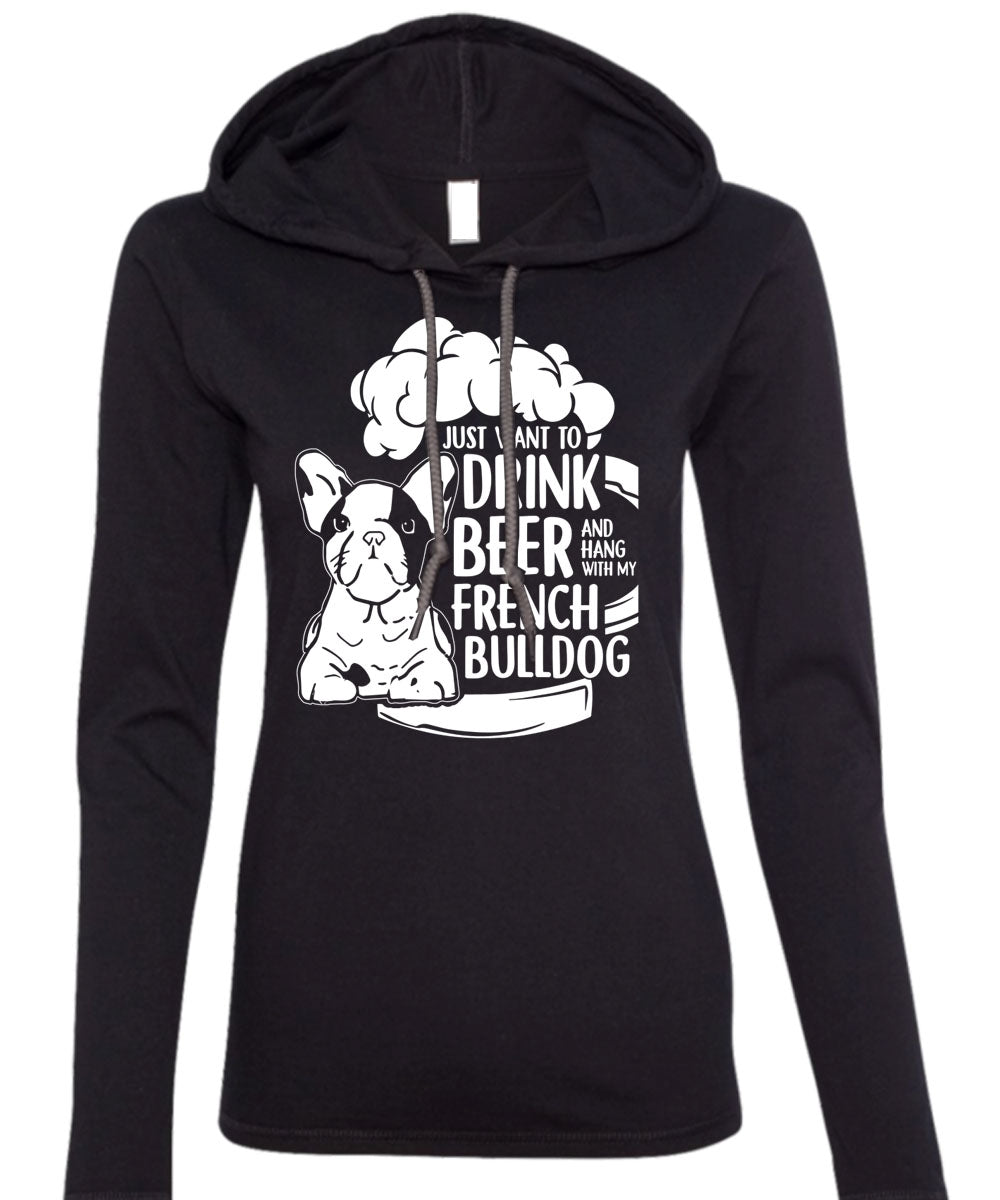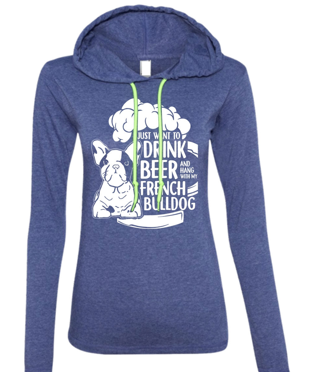I Just Want To Drink Beer T Shirt, Hang Out With French Bulldog T Shirt (Anvil Ladies Ringspun Hooded)