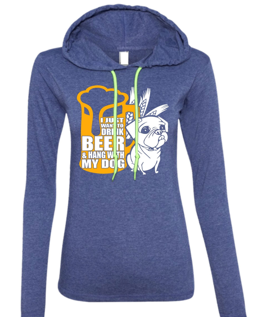 I Just Want To Drink Beer T Shirt, Hang With My Dog T Shirt (Anvil Ladies Ringspun Hooded)