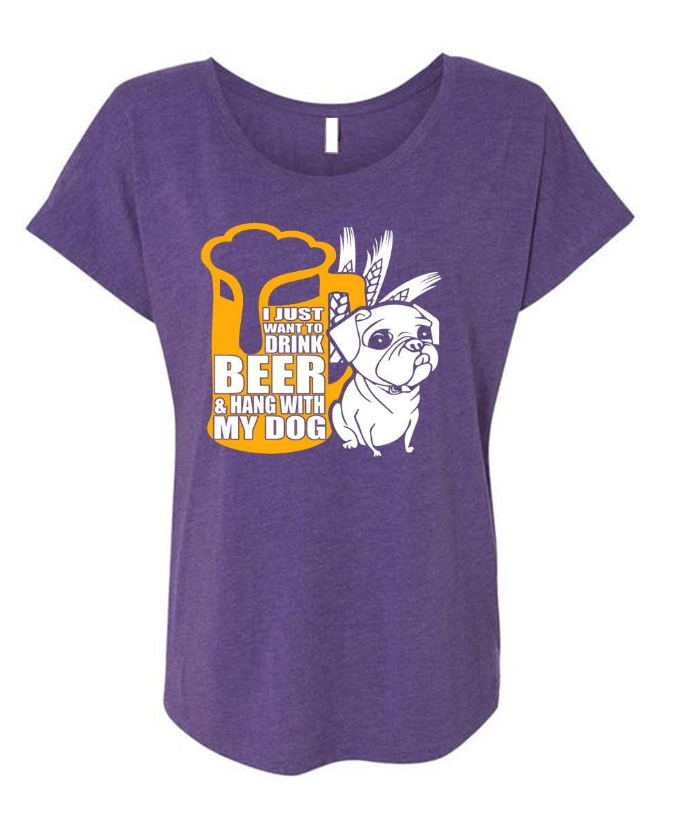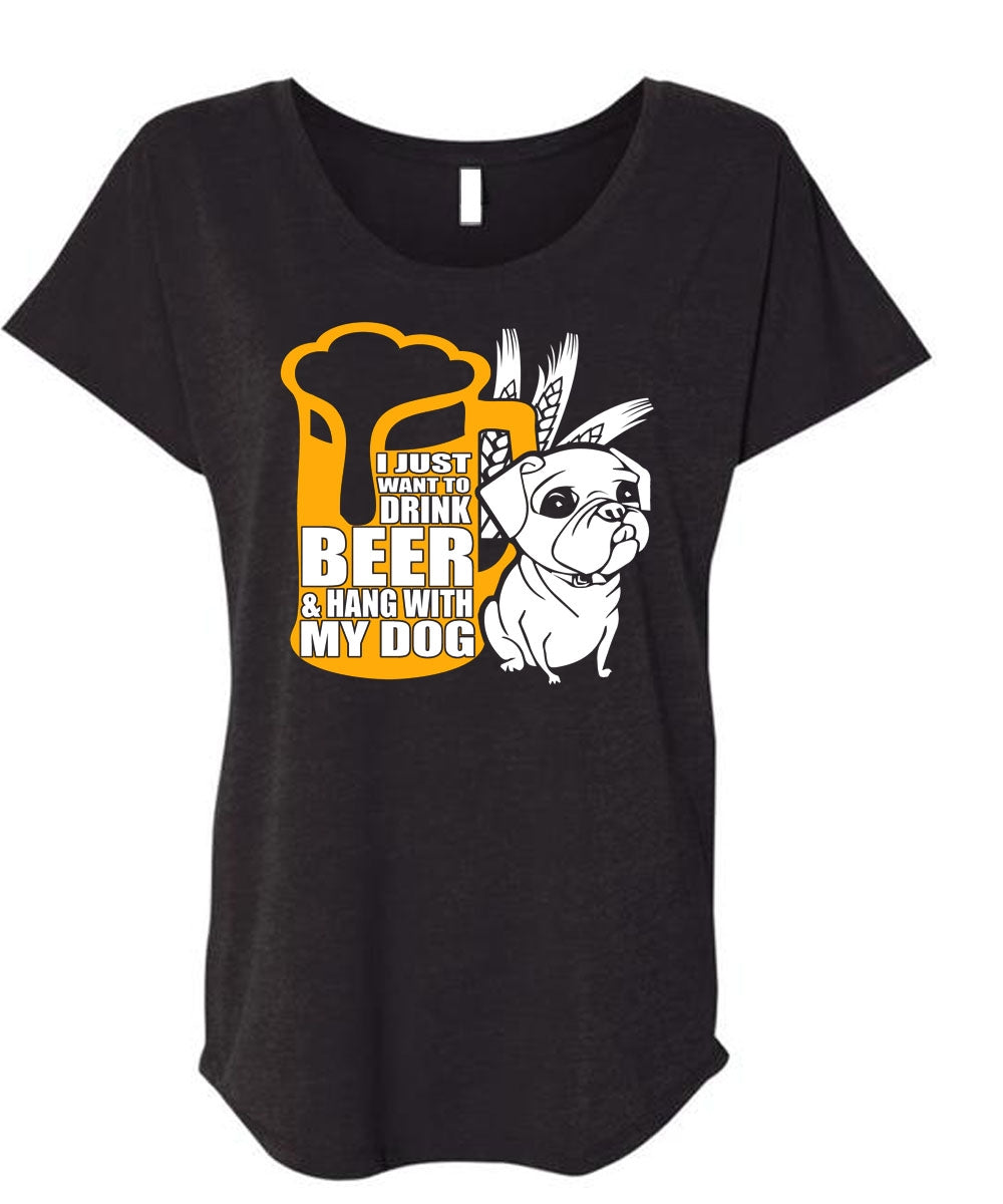 I Just Want To Drink Beer T Shirt, Hang With My Dog T Shirt, Cool Shirt (Ladies' Triblend Dolman Sleeve)