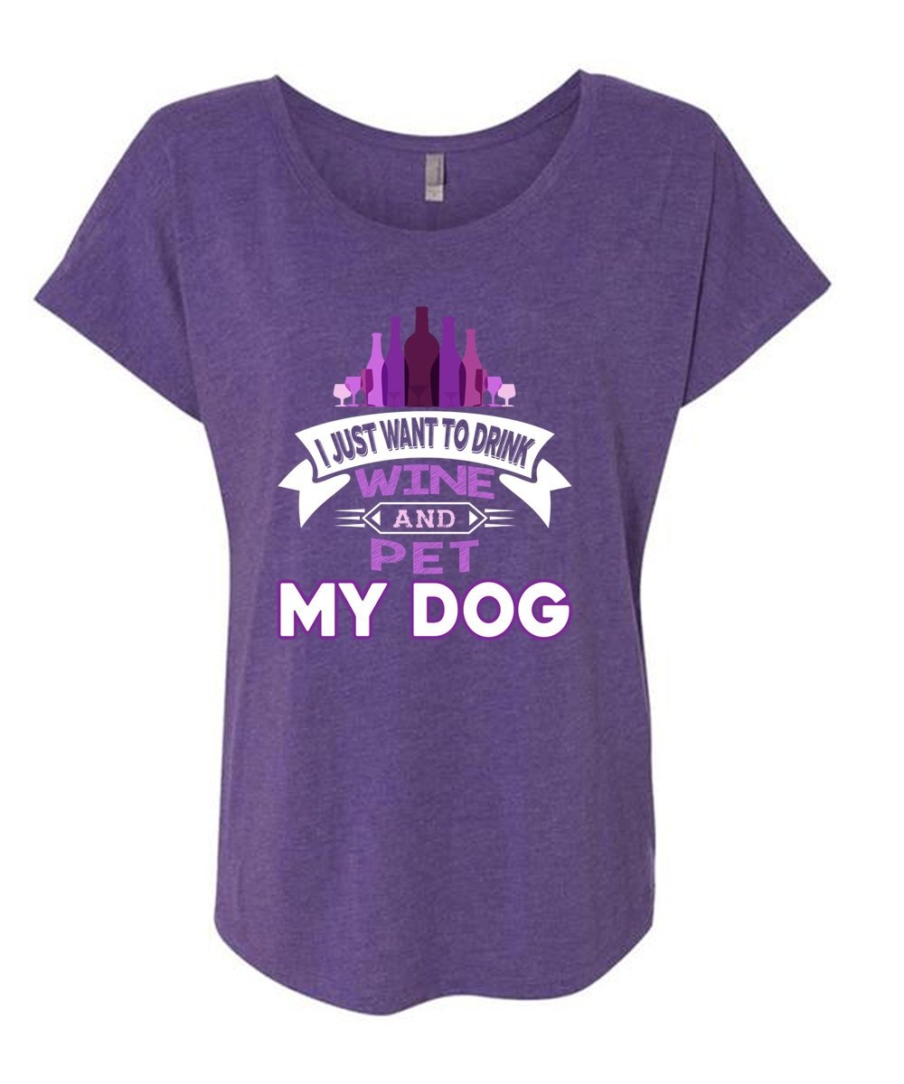 I Just Want To Drink Wine And Pet My Dog T Shirt, I Love My Dog T Shirt (Ladies' Triblend Dolman Sleeve)