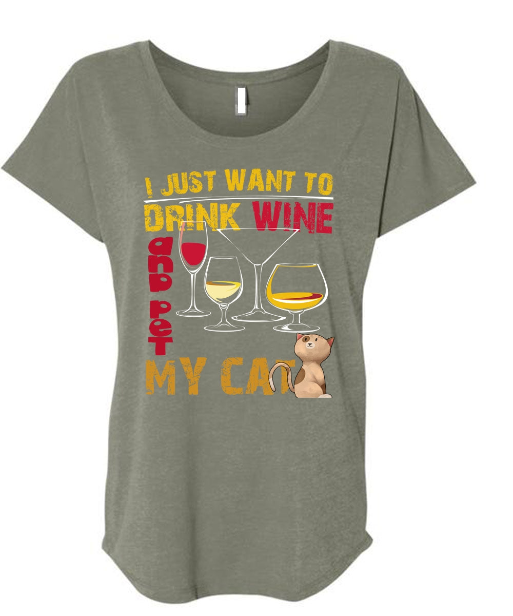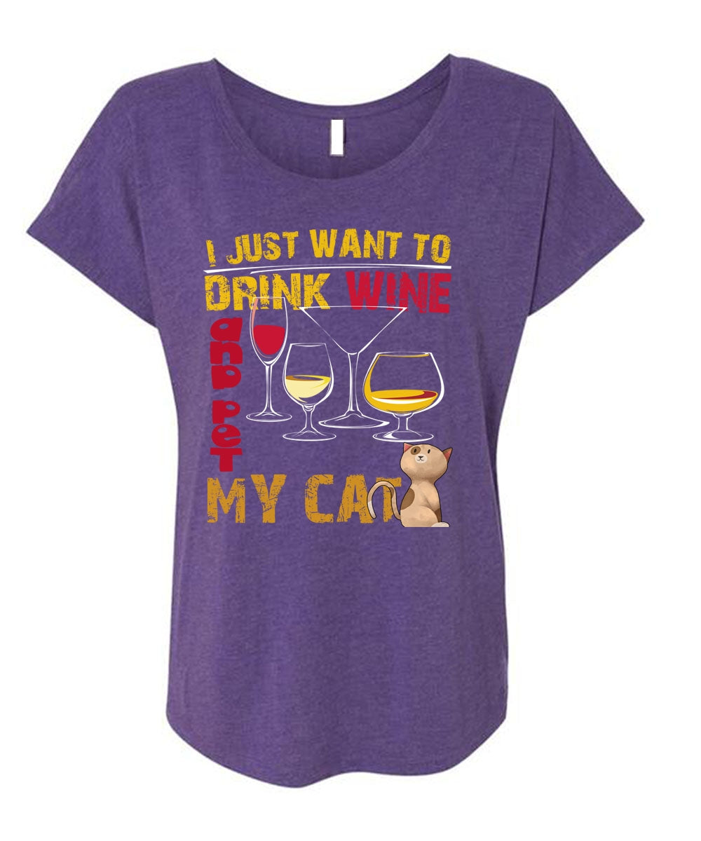 I Just Want To Drink Wine T Shirt, Pet My Cat T Shirt, Cool Shirt (Ladies' Triblend Dolman Sleeve)
