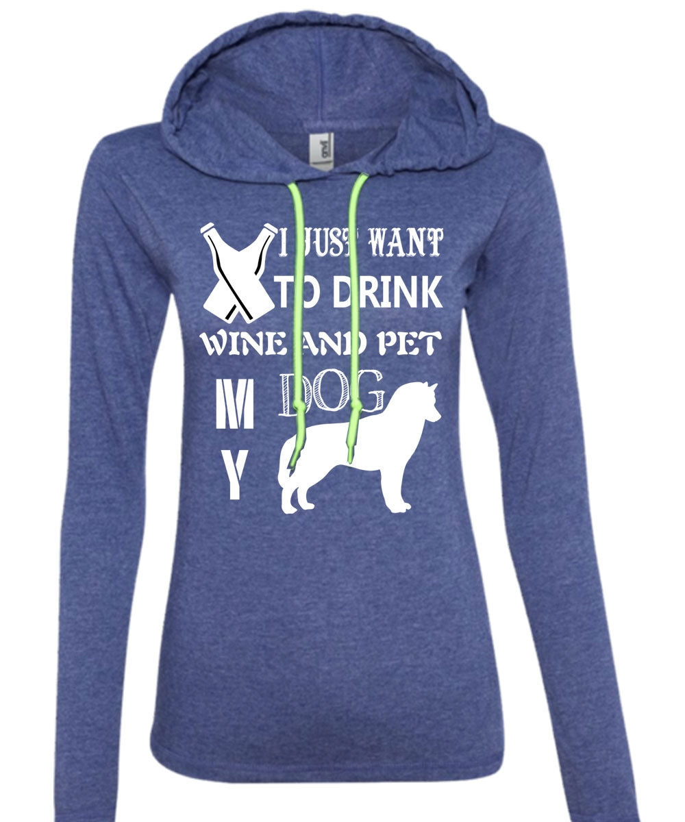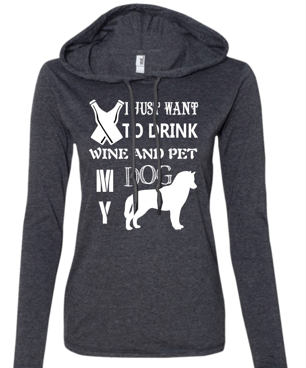I Just Want To Drink Wine T Shirt, Pet My Dog Shirt (Anvil Ladies Ringspun Hooded)