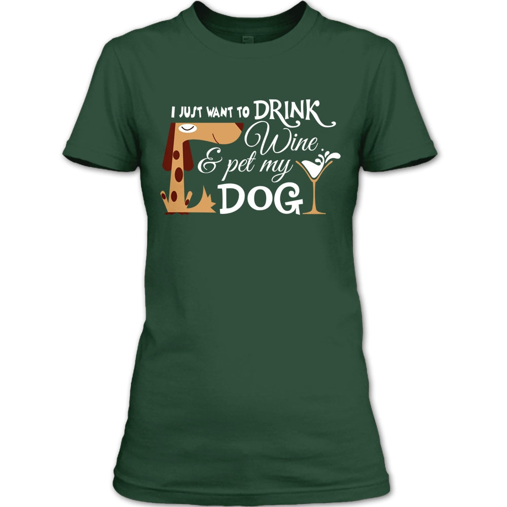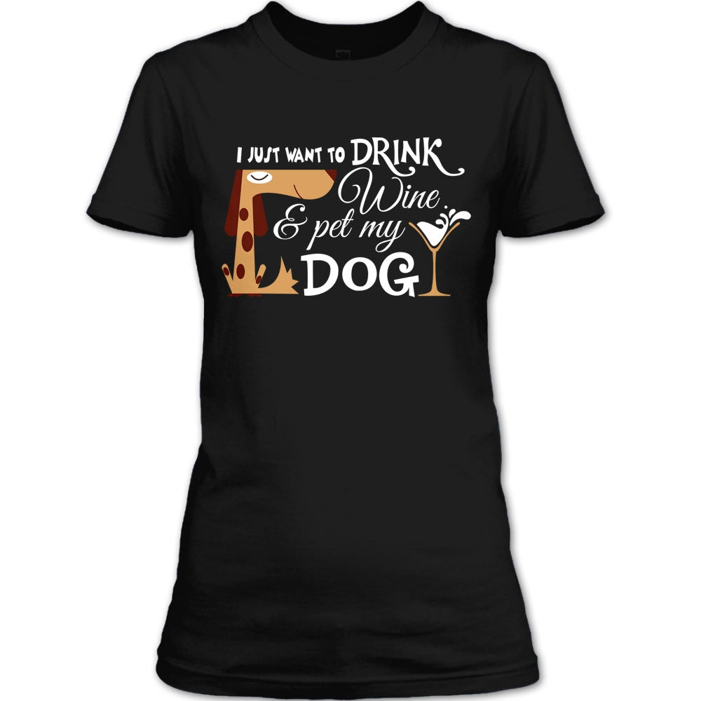 I Just Want To Drink Wine T Shirt, Pet My Dog T Shirt