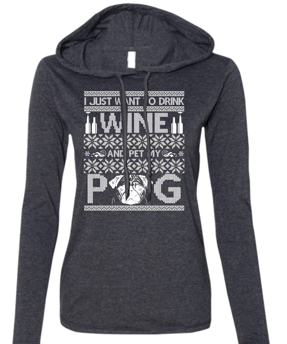 I Just Want To Drink Wine T Shirt, Pet My Dog T Shirt (Anvil Ladies Ringspun Hooded)