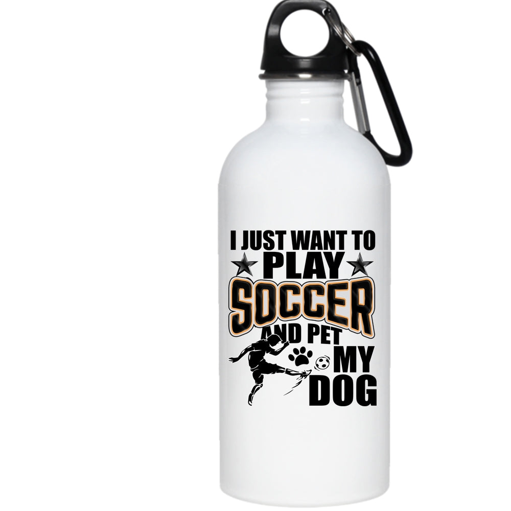 I Just Want To Play Soccer And Pet 20 oz Stainless Steel Bottle,My Dog Outdoor Sports Water Bottle
