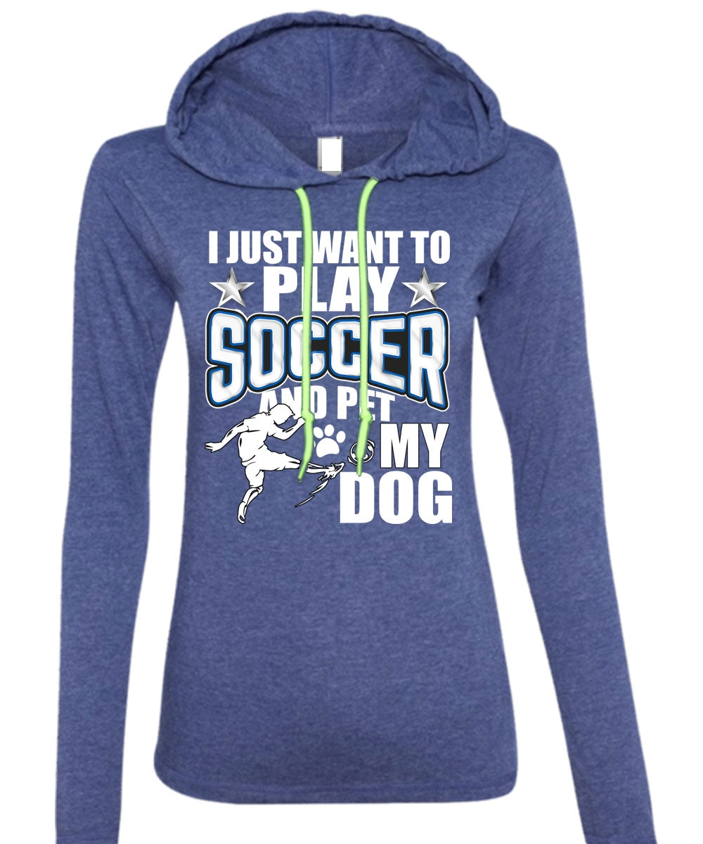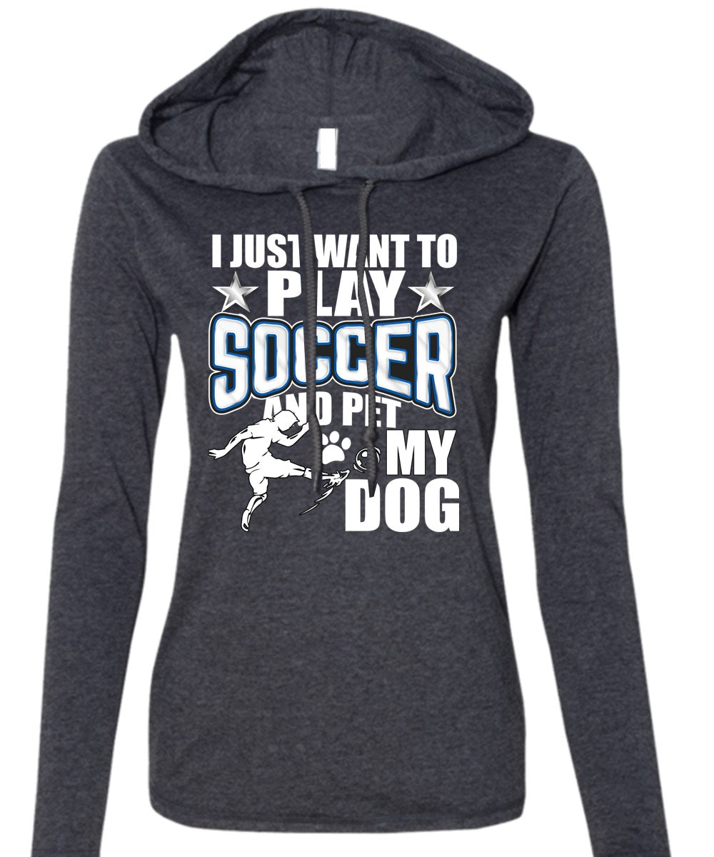 I Just Want To Play Soccer T Shirt, Pet My Dog T Shirt (Anvil Ladies Ringspun Hooded)