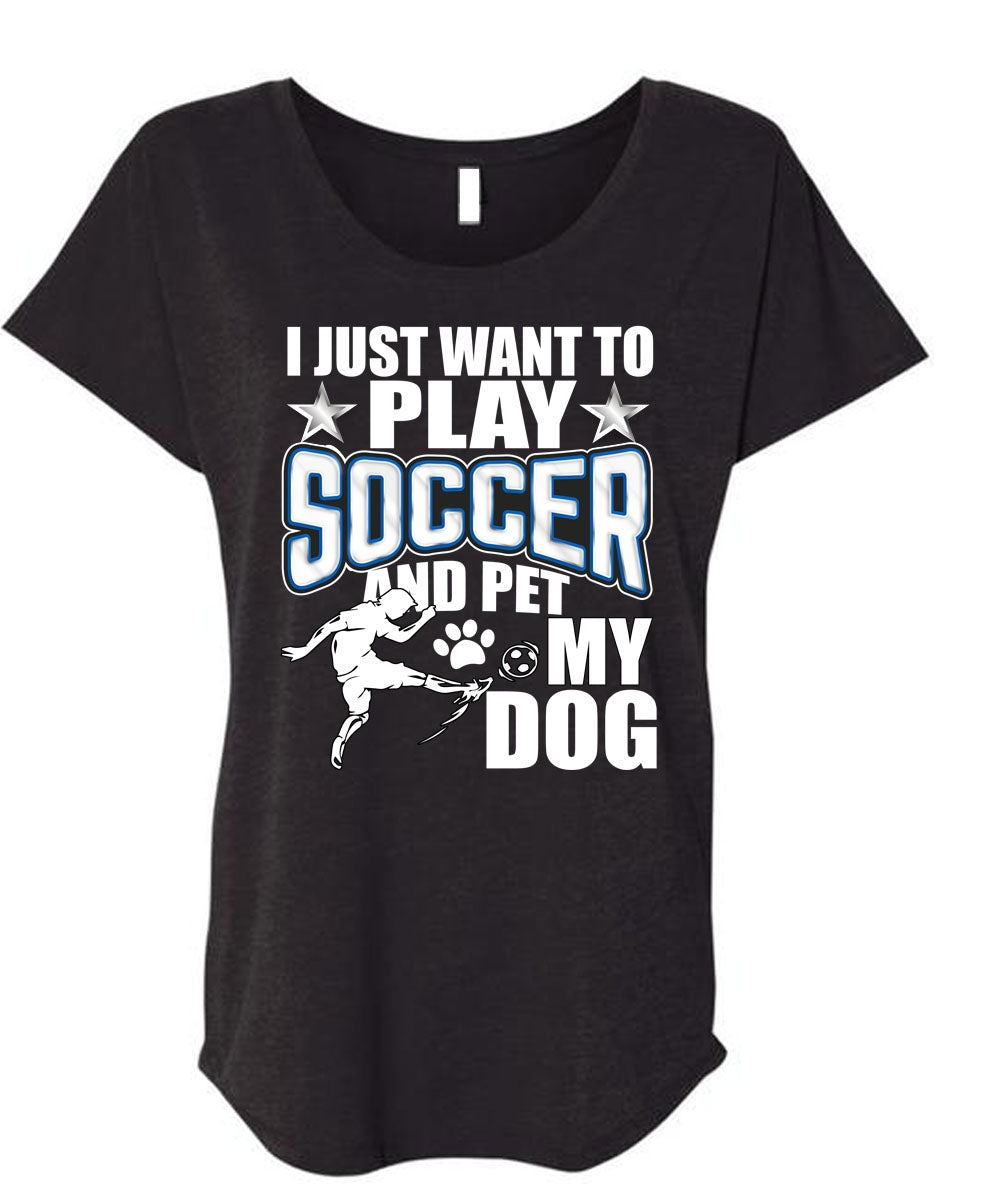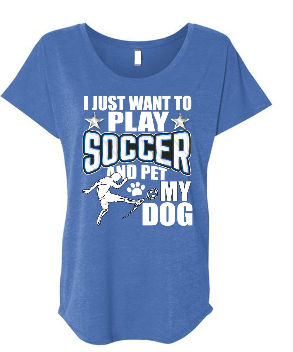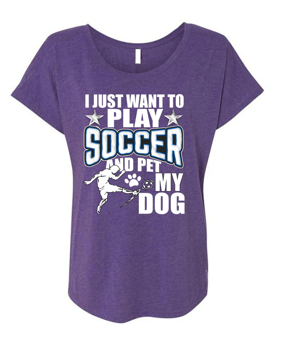 I Just Want To Play Soccer T Shirt, Pet My Dog T Shirt, Cool Shirt (Ladies' Triblend Dolman Sleeve)