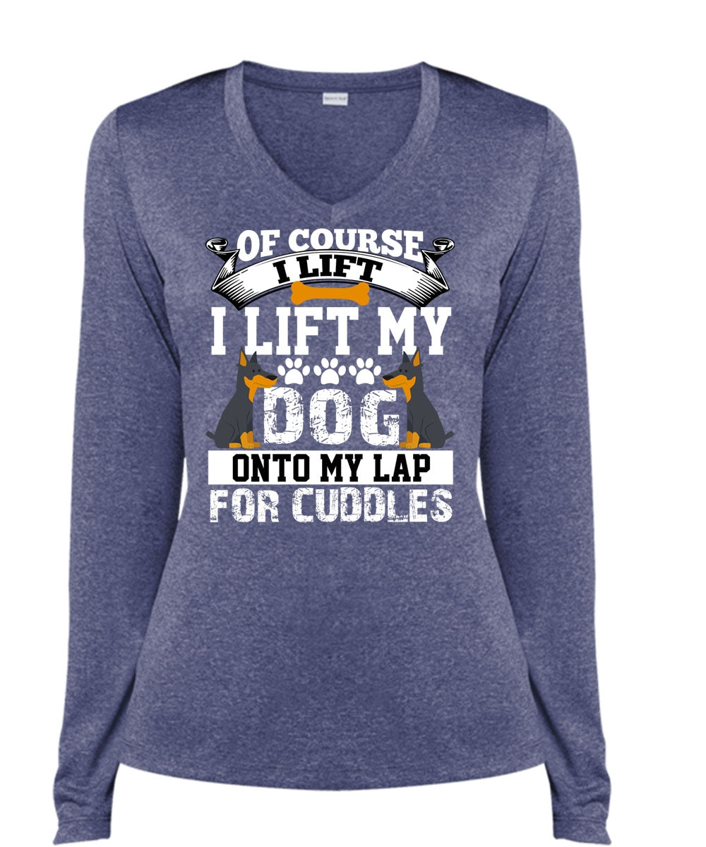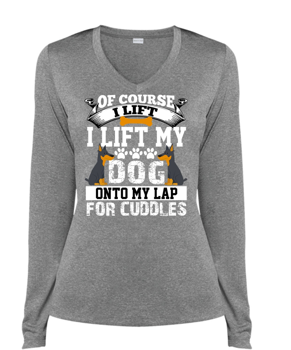 I Lift My Dog Onto My Lap T Shirt, My Favorite T Shirt, Cool Shirt (Ladies LS Heather V-Neck)