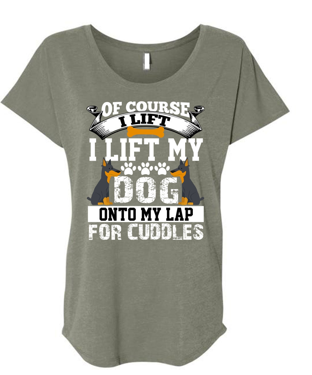 I Lift My Dog Onto My Lap T Shirt, My Favorite T Shirt, Cool Shirt (Ladies' Triblend Dolman Sleeve)