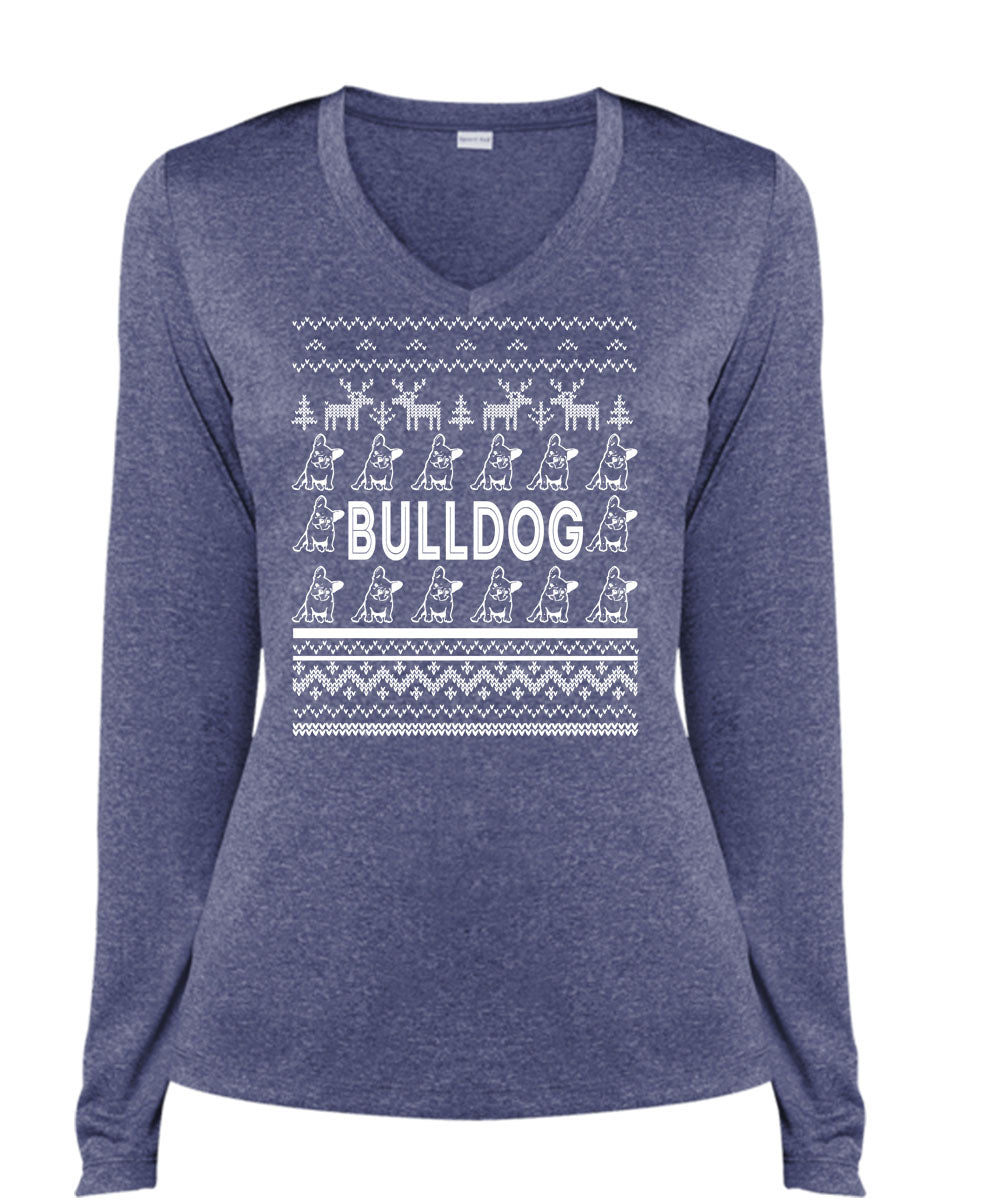 I Love Bulldog T Shirt, My Favorite T Shirt, Cool Shirt (Ladies LS Heather V-Neck)