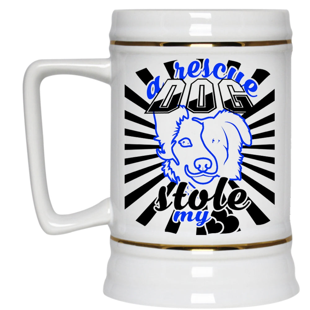 I Love Dogs Beer Stein 22oz, A Rescue Dog Stole My Heart Beer Mug