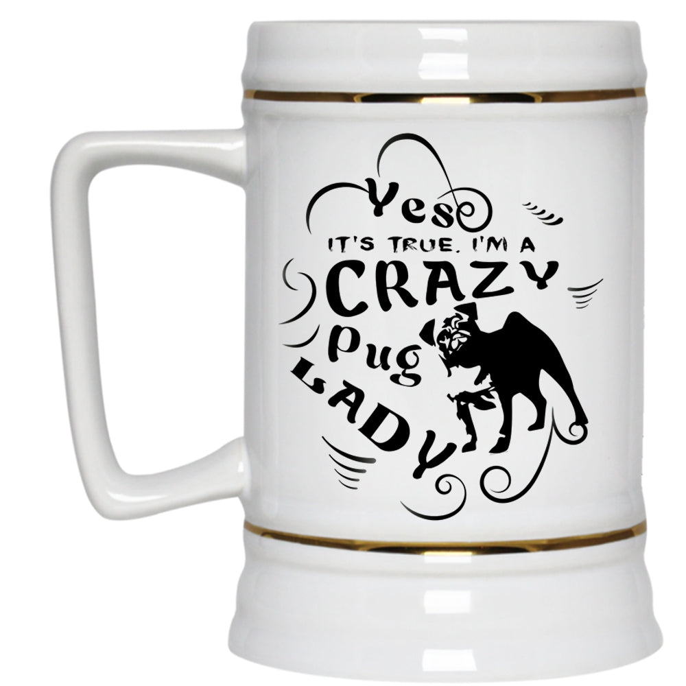 I Love Dogs Beer Stein 22oz, I'm A Crazy Pug Lady Beer Mug