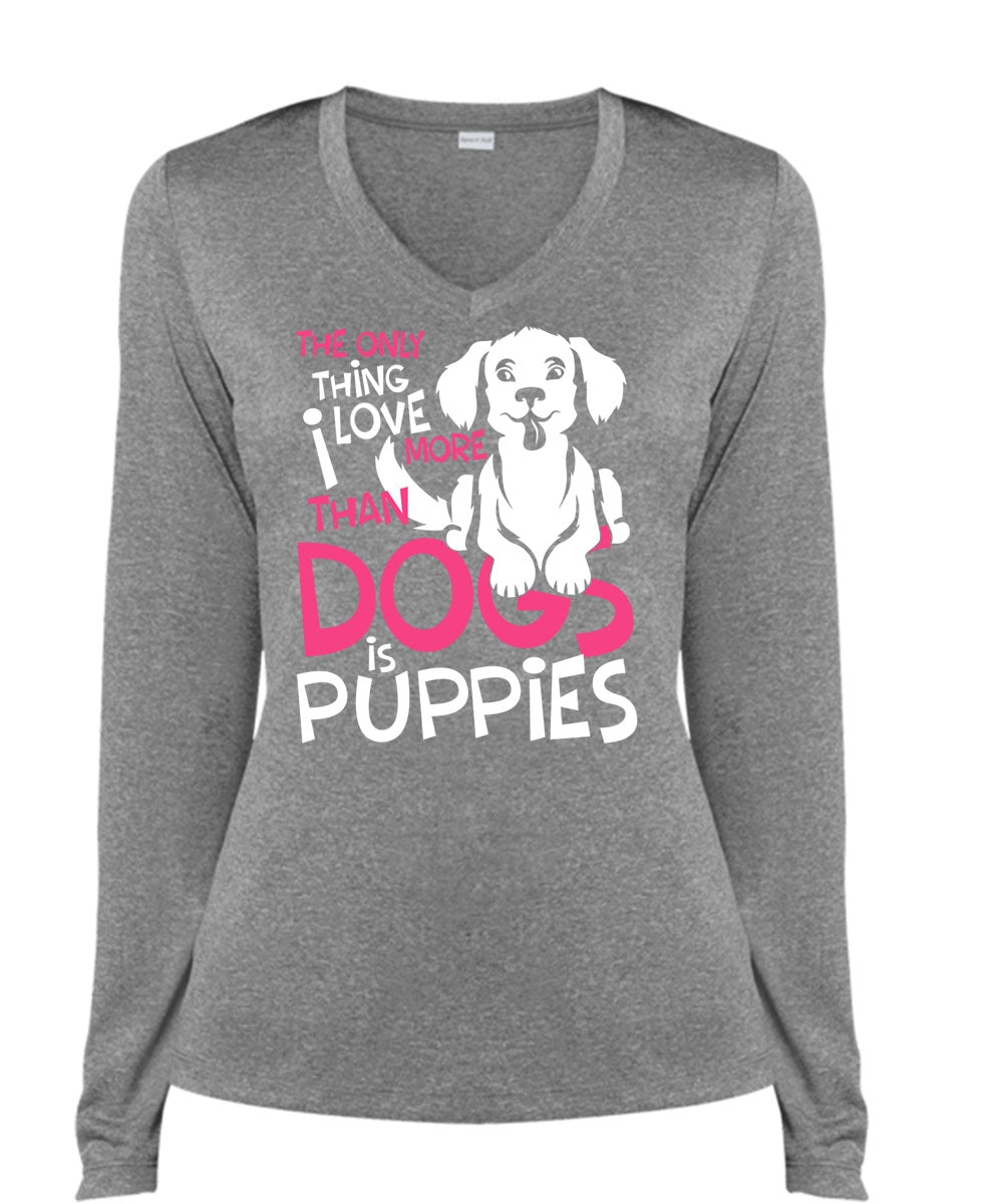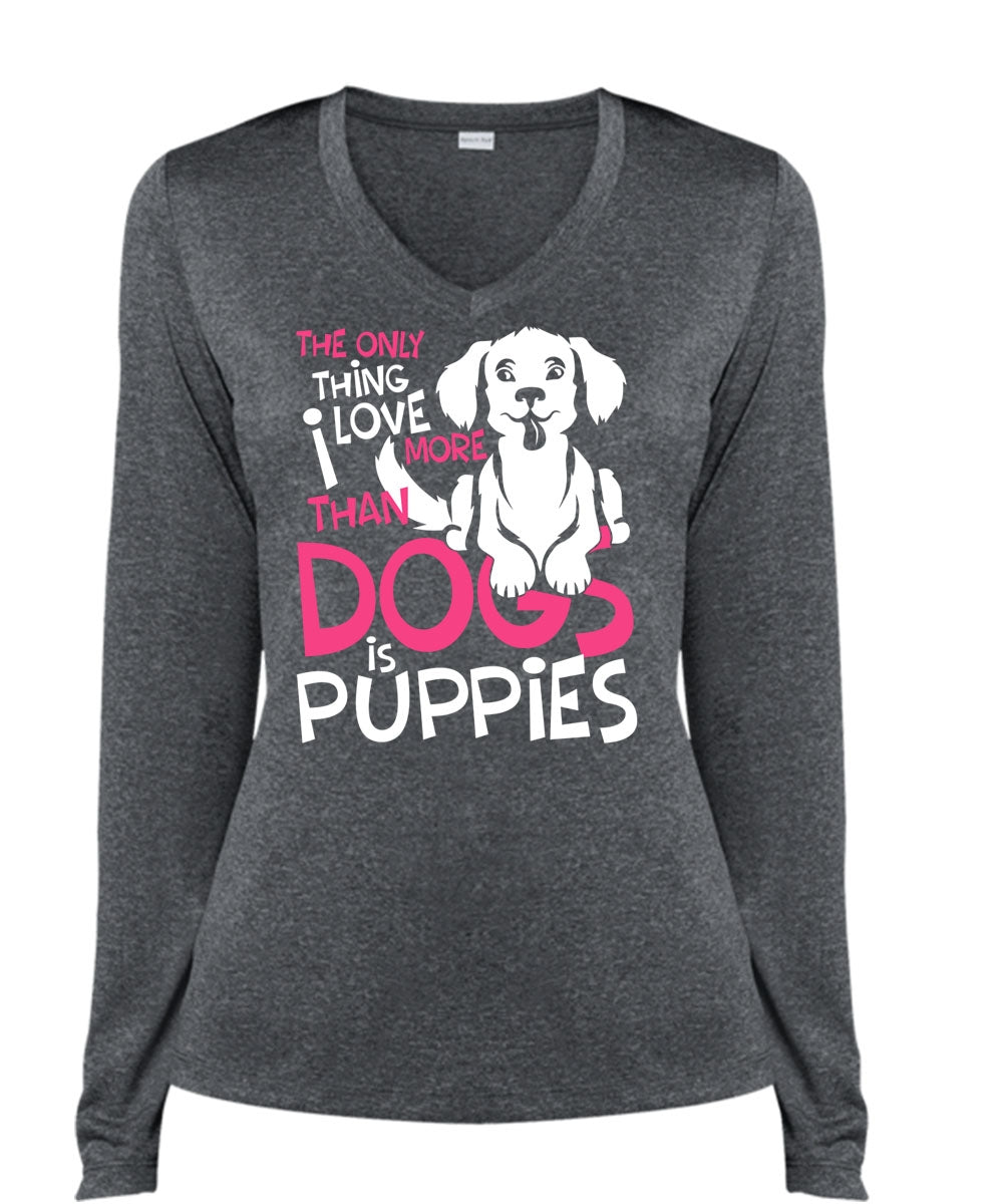 I Love More Than Dogs Is Puppies T Shirt, My Favorite T Shirt, Cool Shirt (Ladies LS Heather V-Neck)