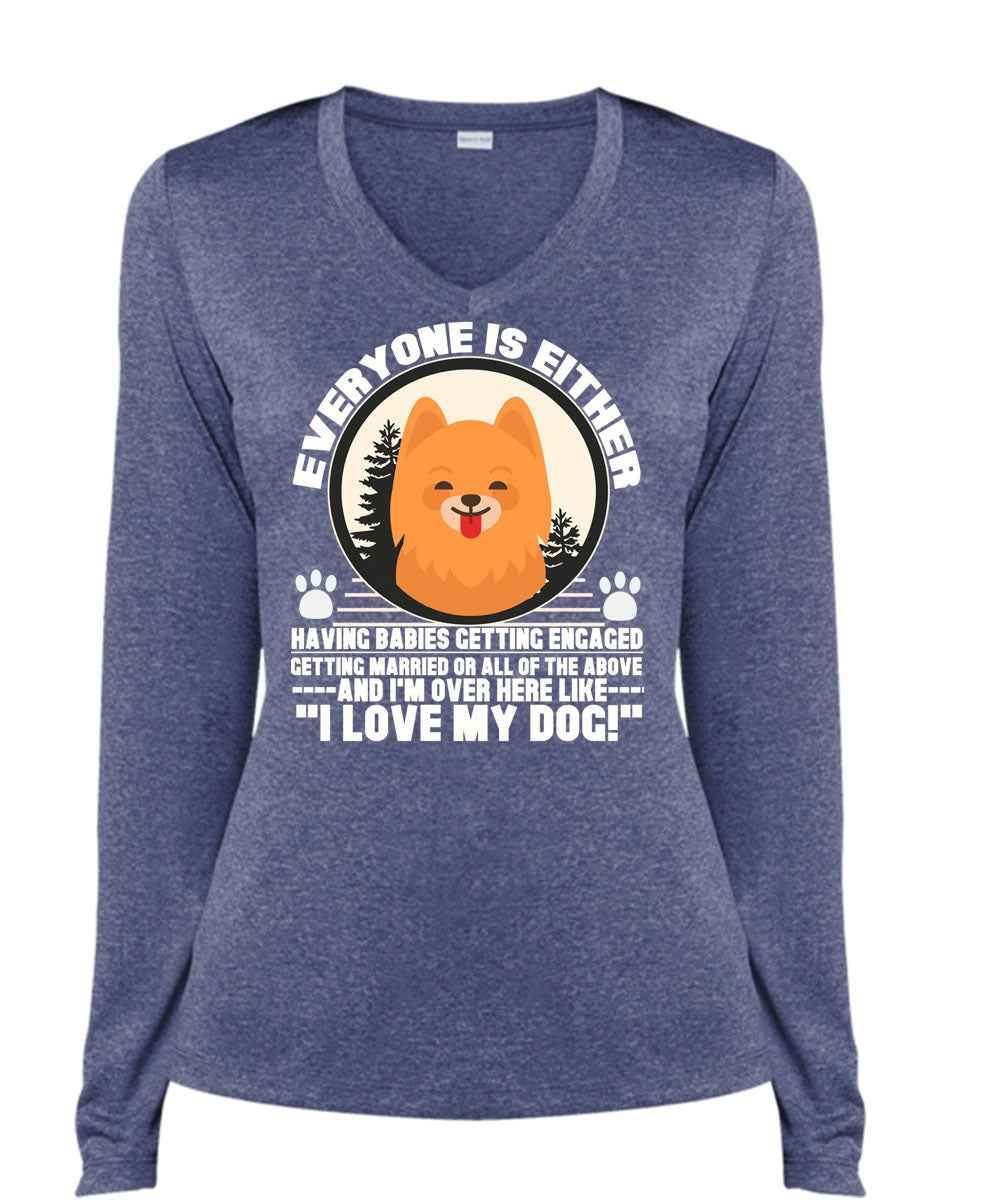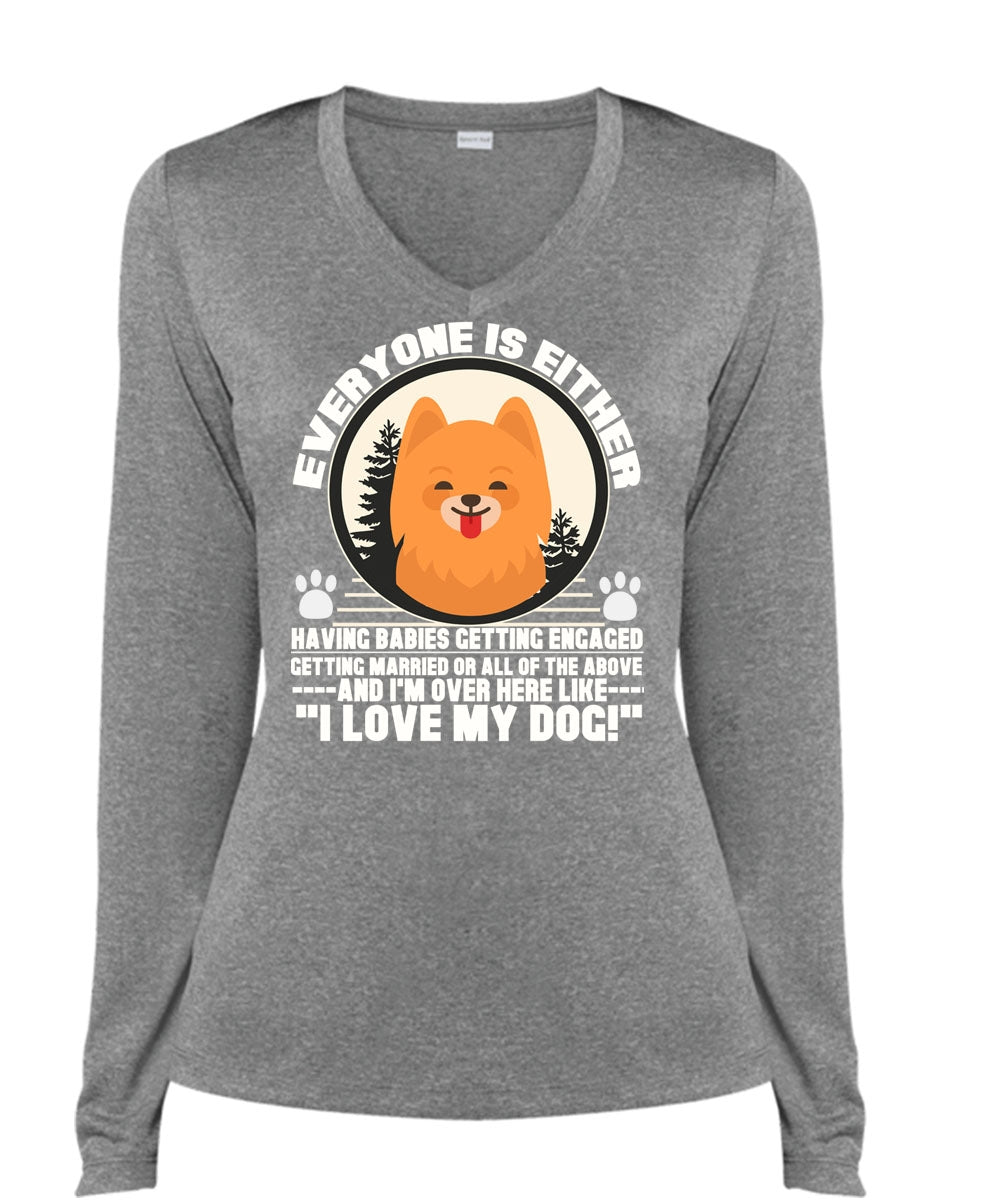 I Love My Dog T Shirt, I'm Over Here Like T Shirt, Cool Shirt (Ladies LS Heather V-Neck)