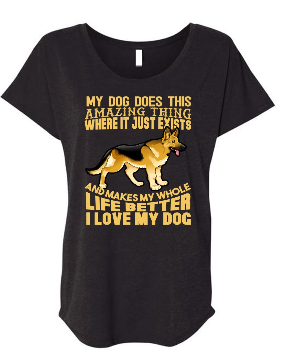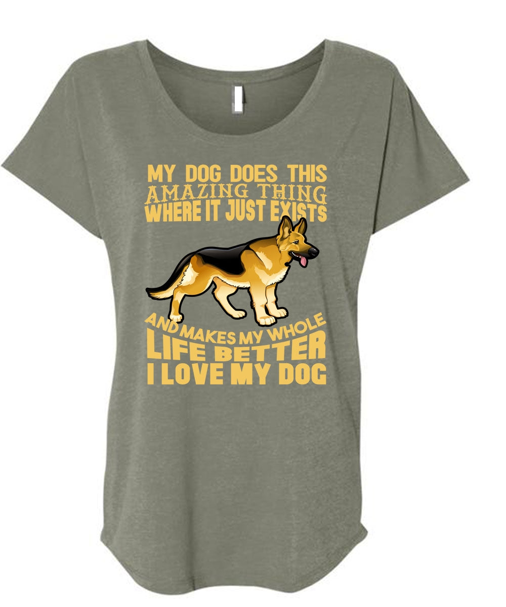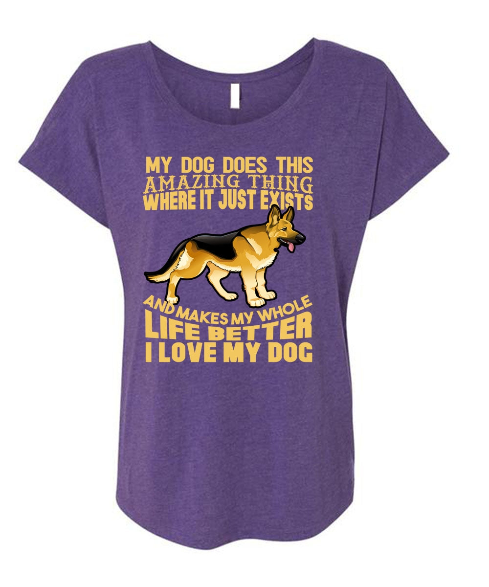 I Love My Dog T Shirt, My Dog Does This Amazing T Shirt, Cool Shirt (Ladies' Triblend Dolman Sleeve)
