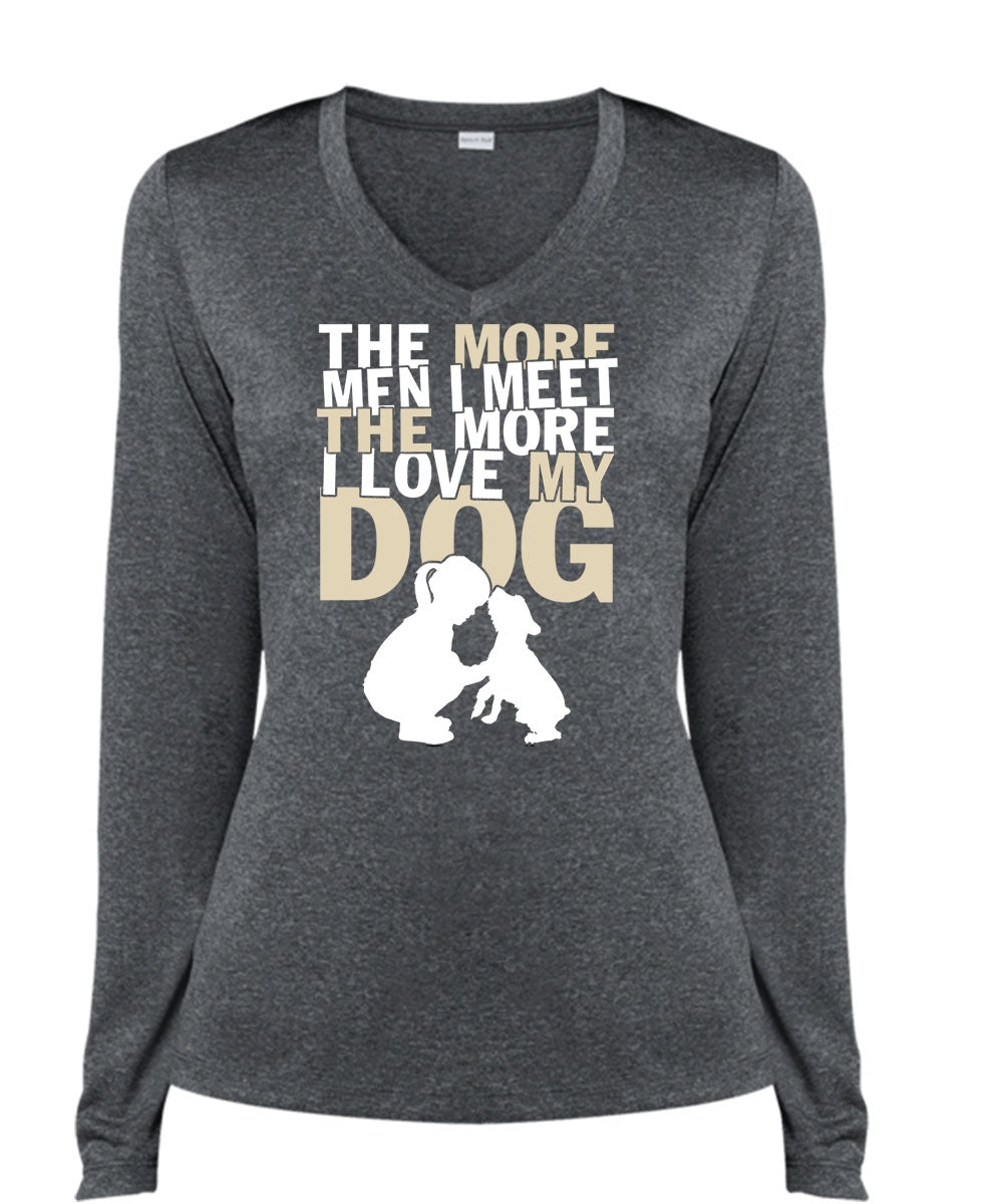 I Love My Dog T Shirt, My Favorite T Shirt, Cool Shirt (Ladies LS Heather V-Neck)