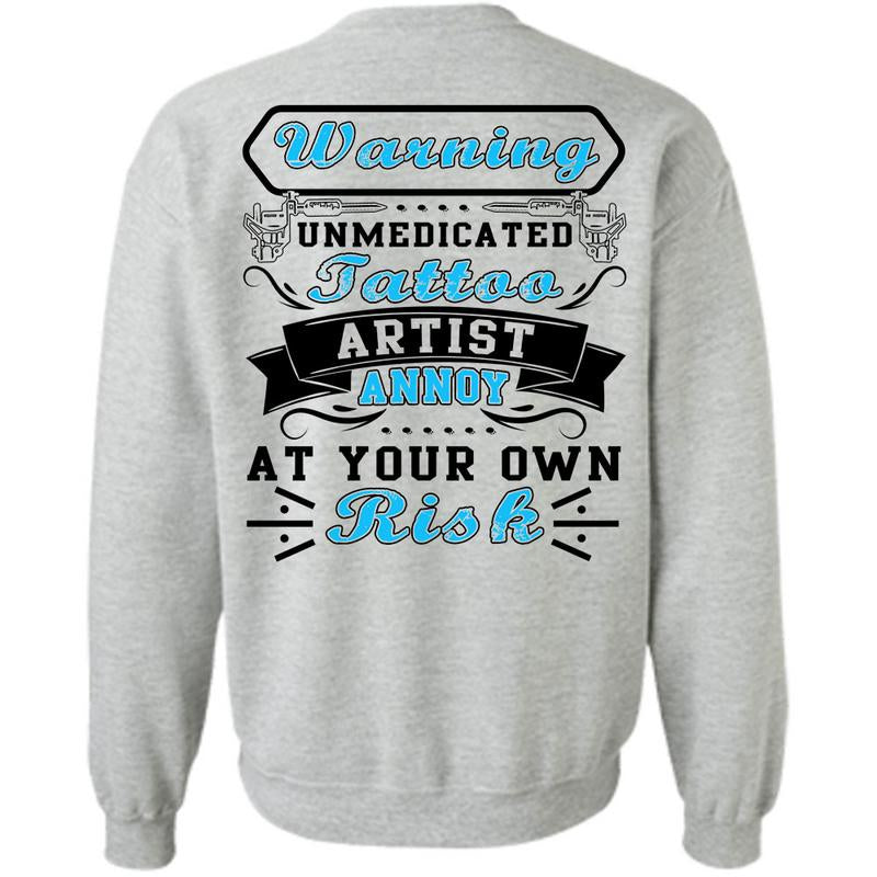 I Love Tattoo T Shirt, Warning Unmedicated Tattoo Artist Sweatshirt