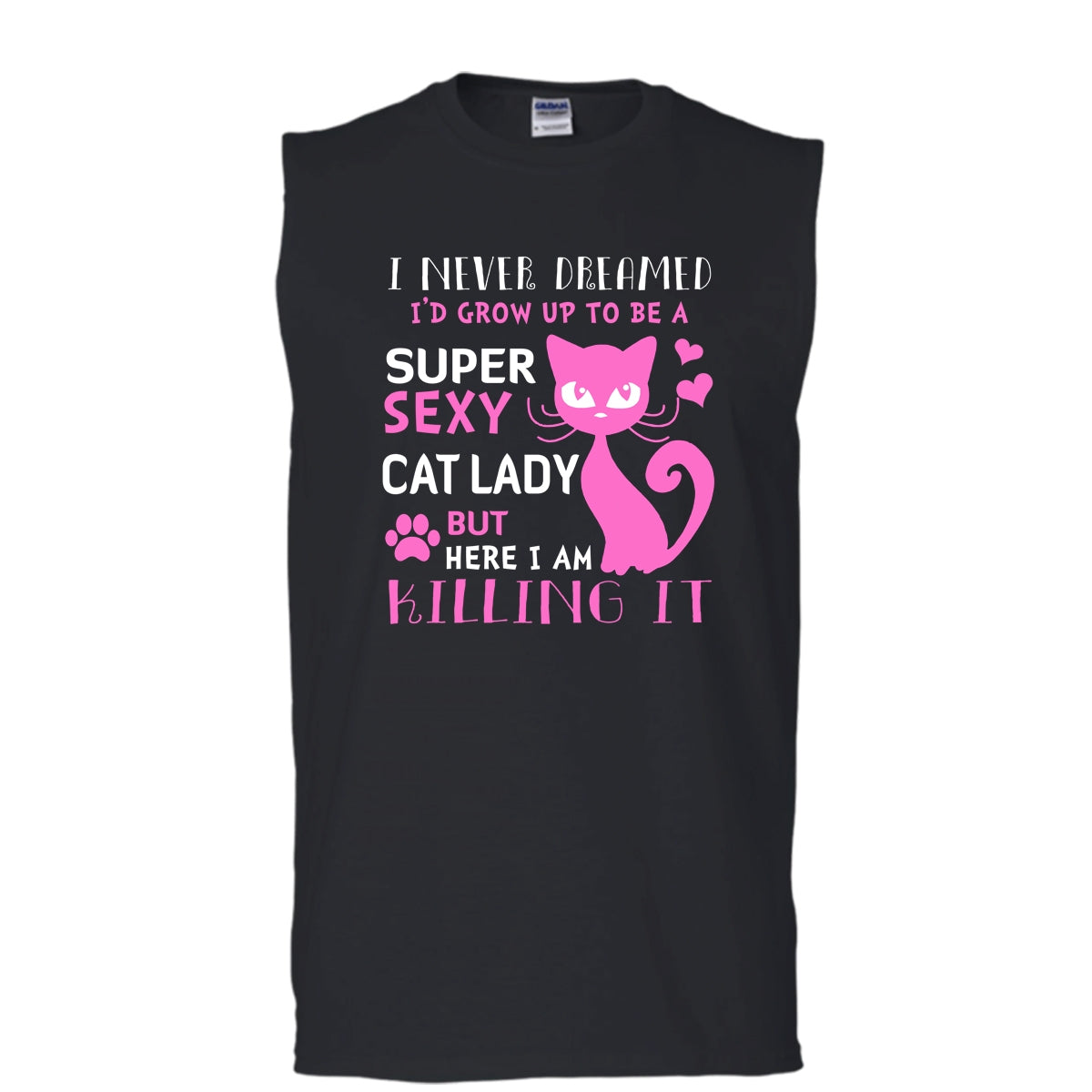 I Never Dreamed I'd Grow Up To Be A Sexy Cat Lady Shirt, Cool Cat Shirt (Men's Cotton Sleeveless)