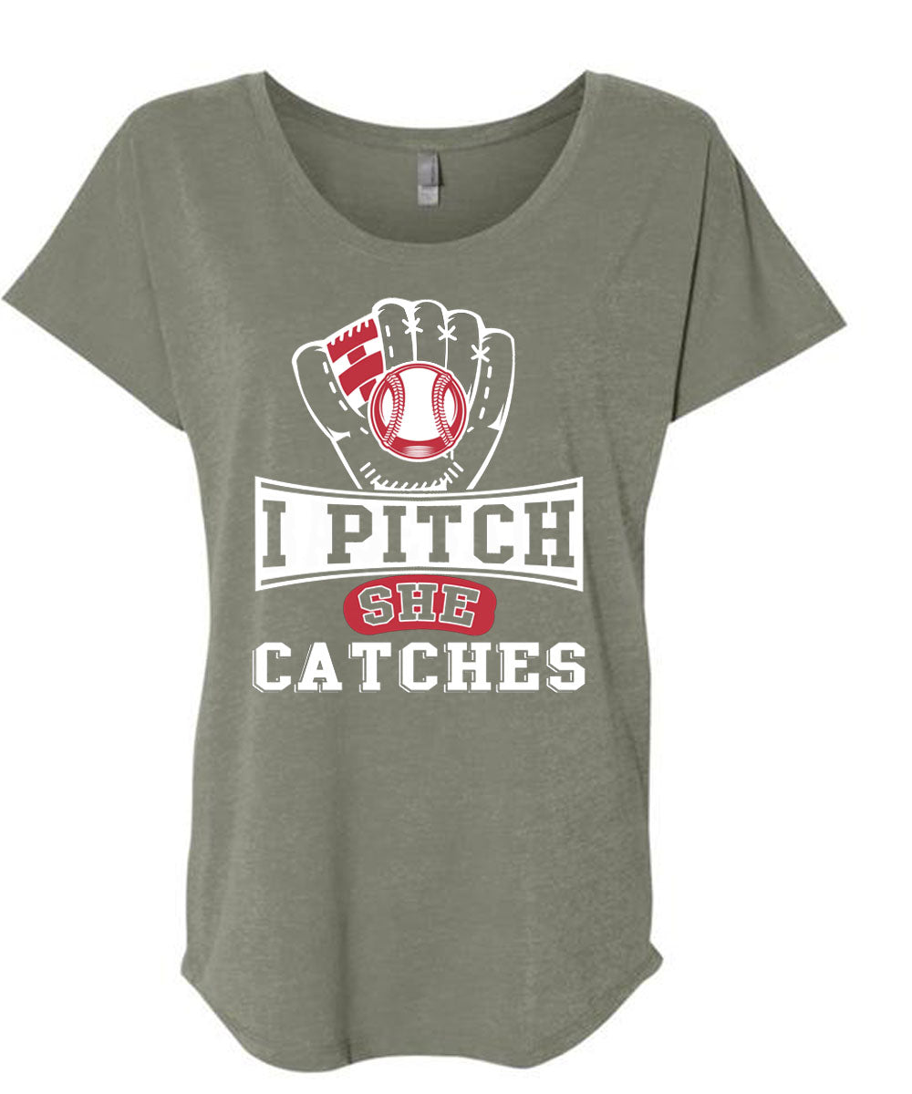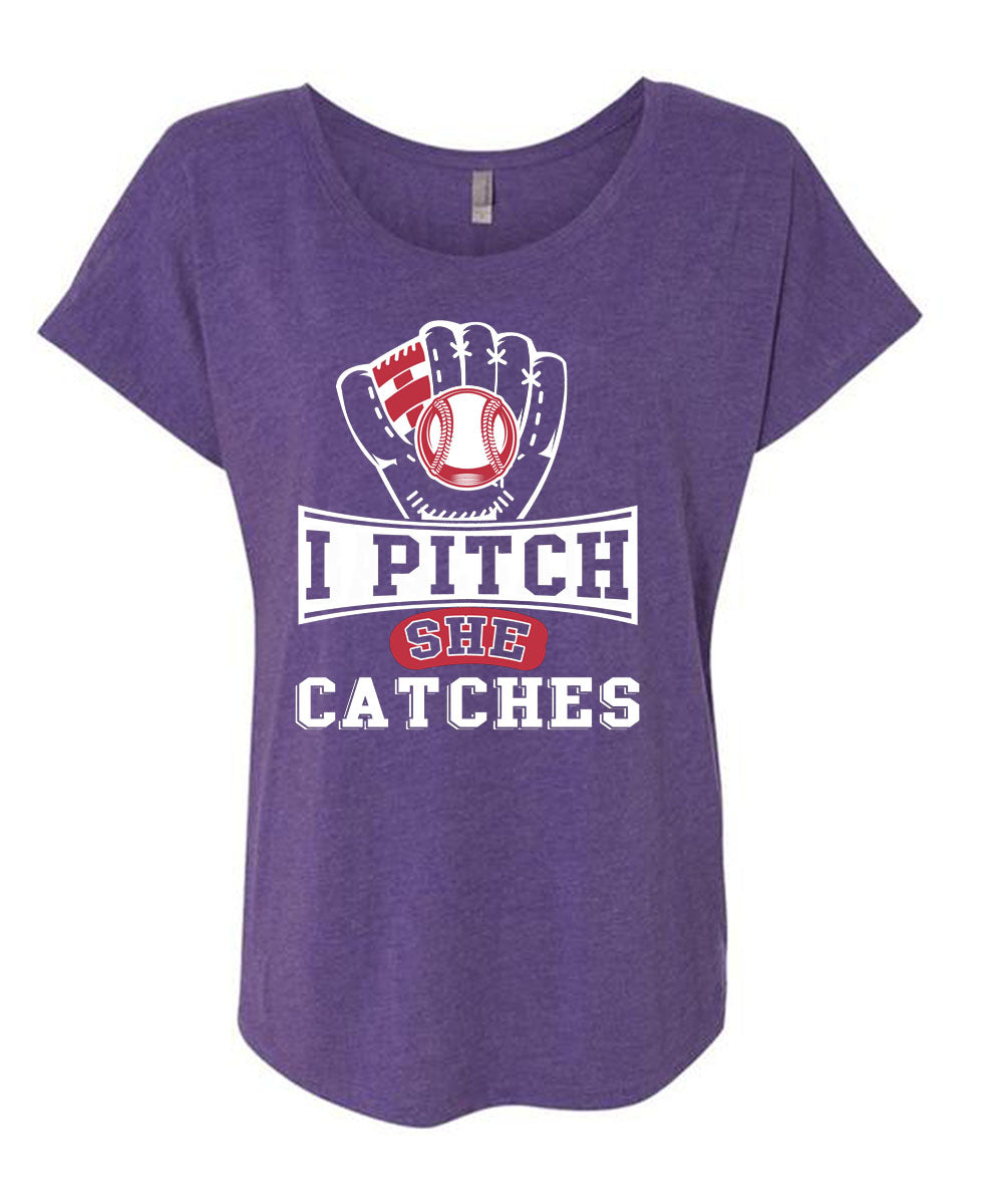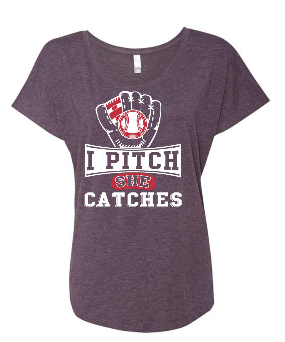 I Pitch She Catch T Shirt, I Love Baseball T Shirt, Cool Shirt (Ladies' Triblend Dolman Sleeve)