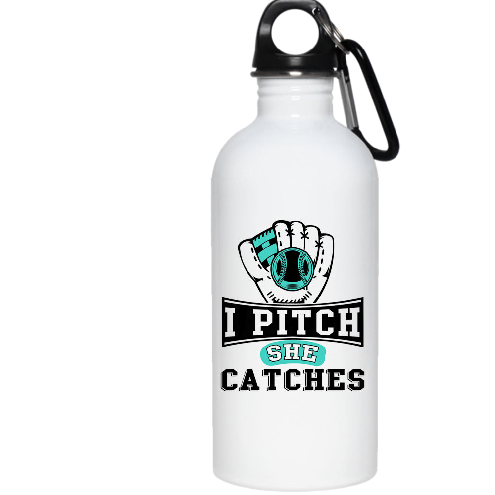 I Pitch She Catches 20 oz Stainless Steel Bottle,Cool Softball Outdoor Sports Water Bottle